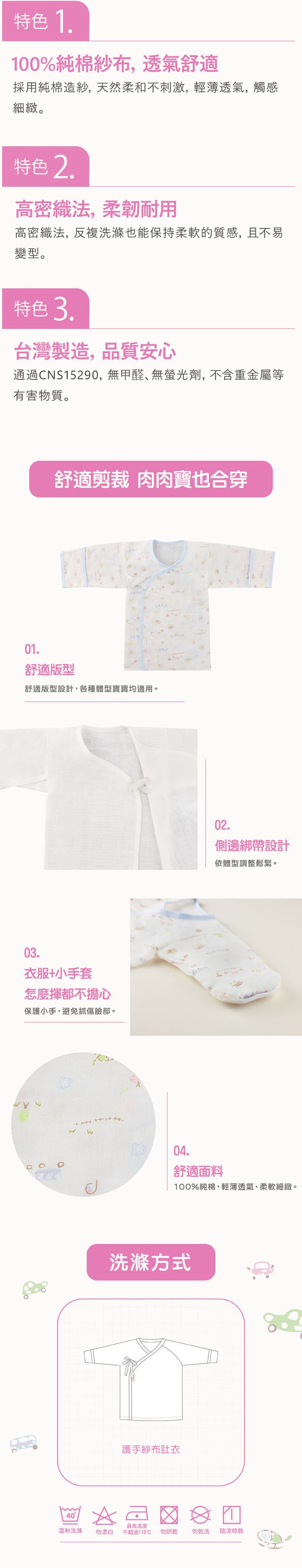 品名:純棉柔紗-快樂車車 反摺護手紗布肚衣