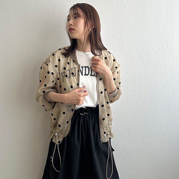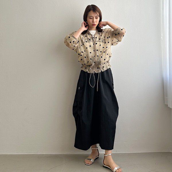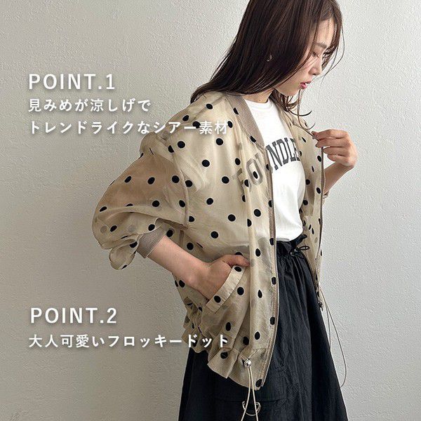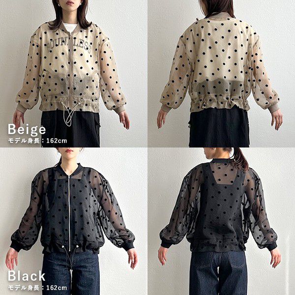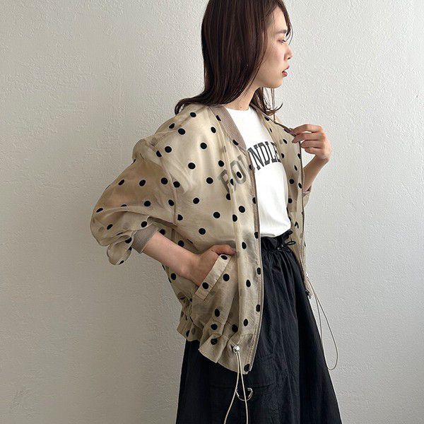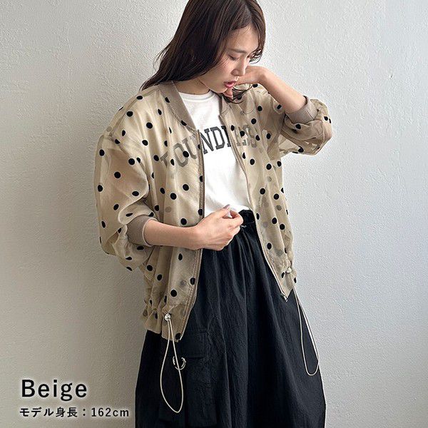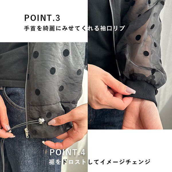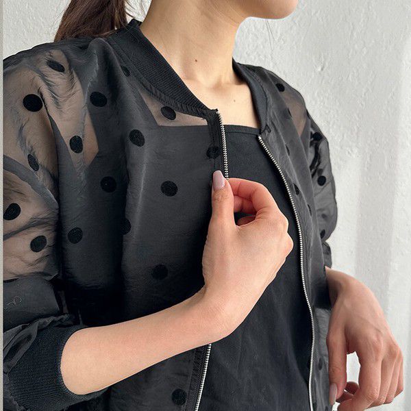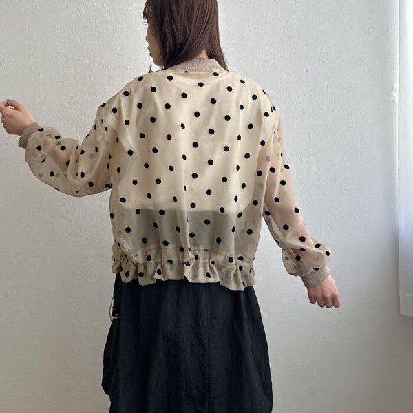 • 品名:圓點透膚下擺抽繩拉鍊薄外套