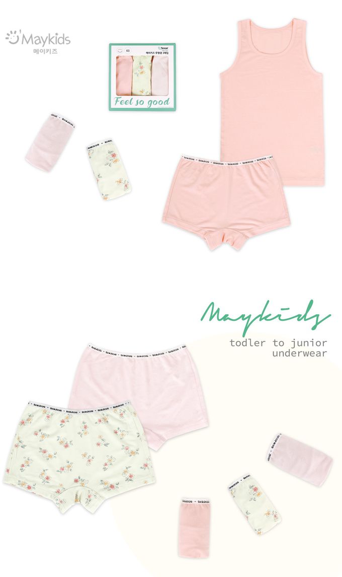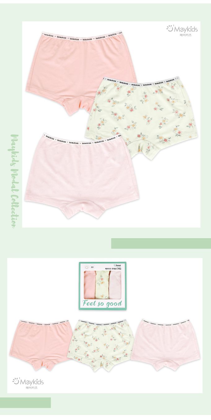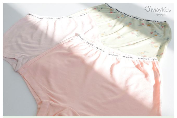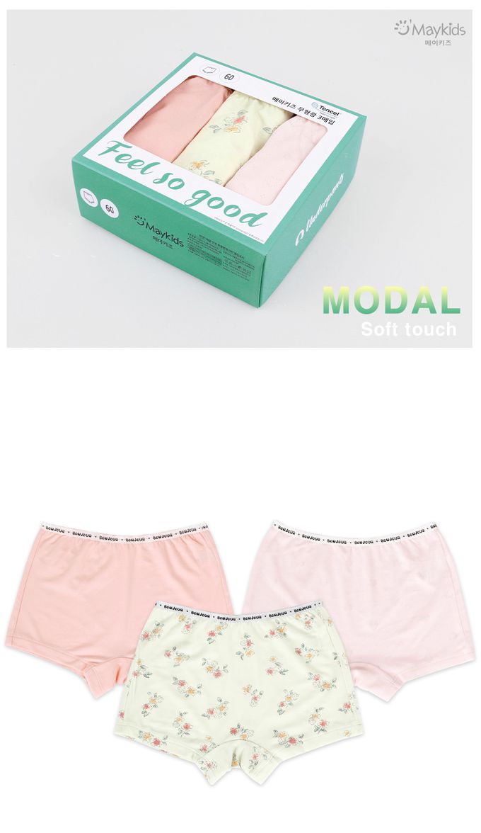 韓國 Maykids - (3入組)女寶天絲莫代爾四角褲-粉橘X花印