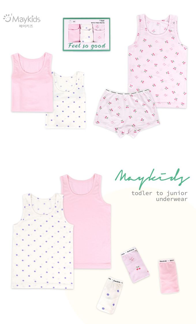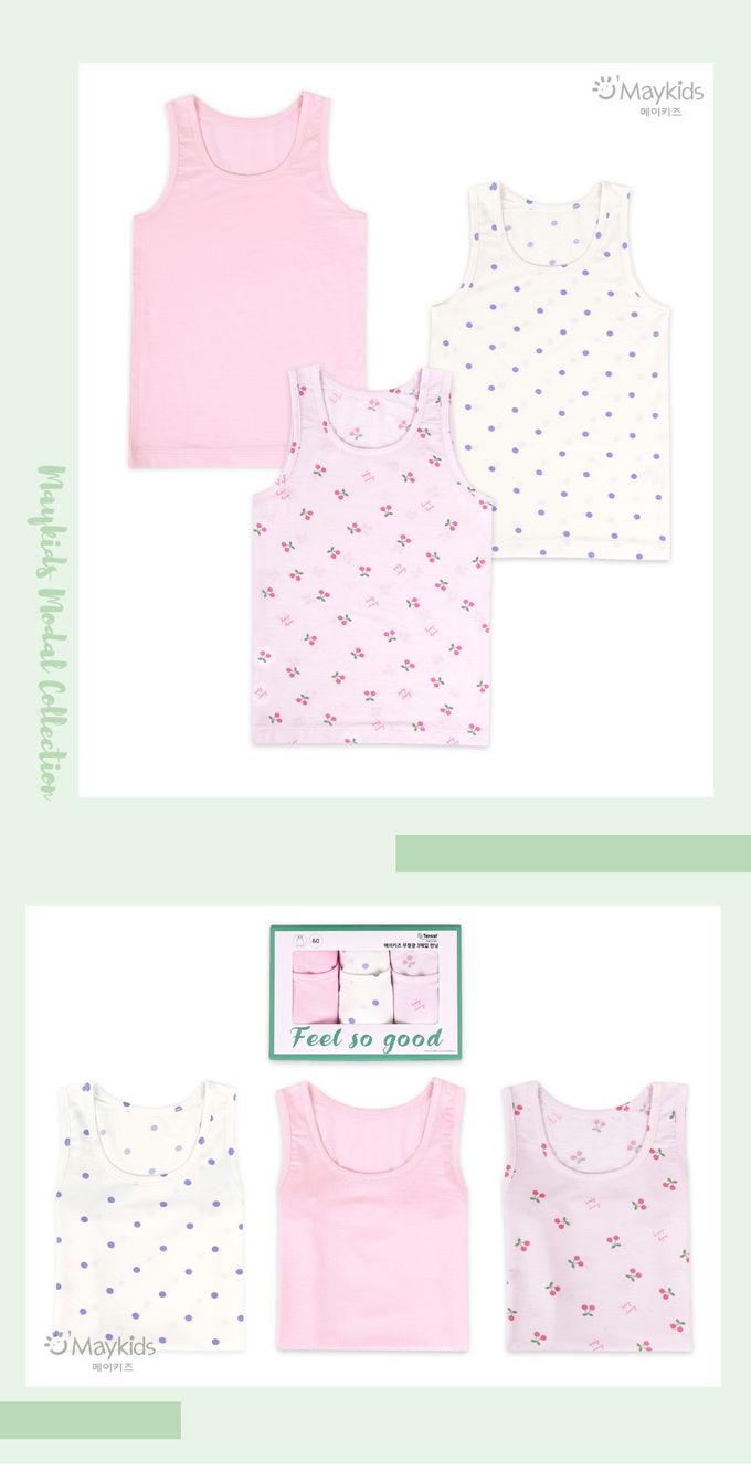韓國 Maykids - (3入組)女寶天絲莫代爾背心-點點X櫻桃
