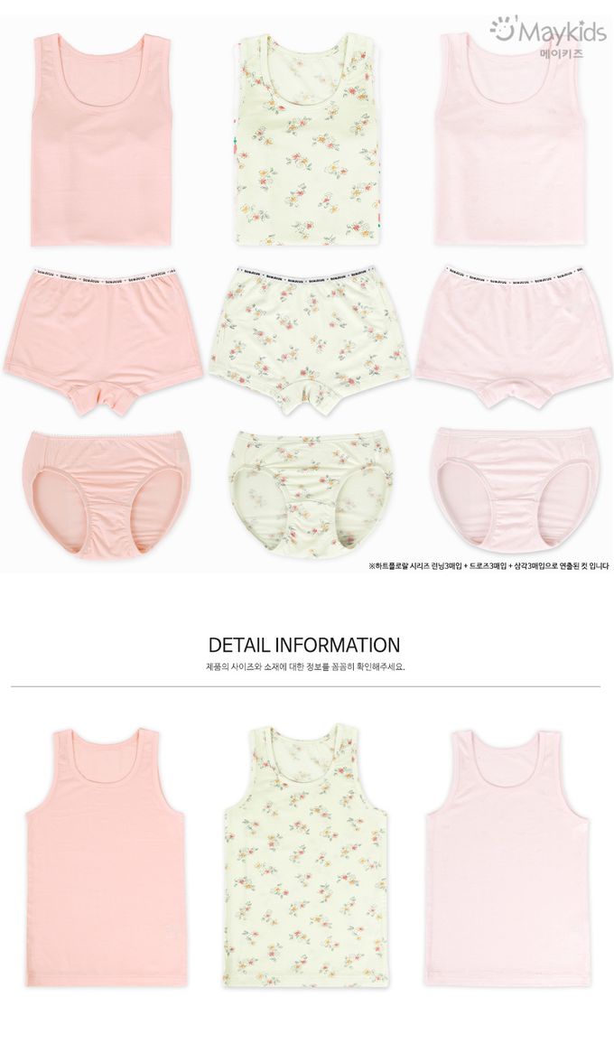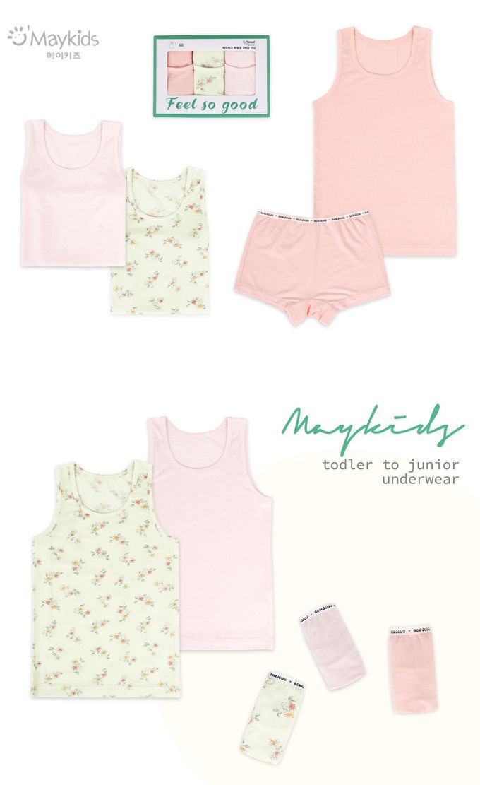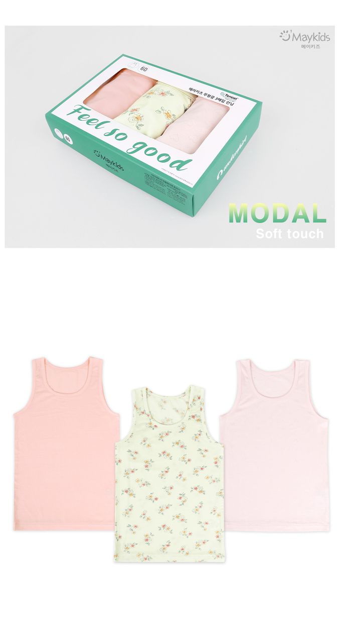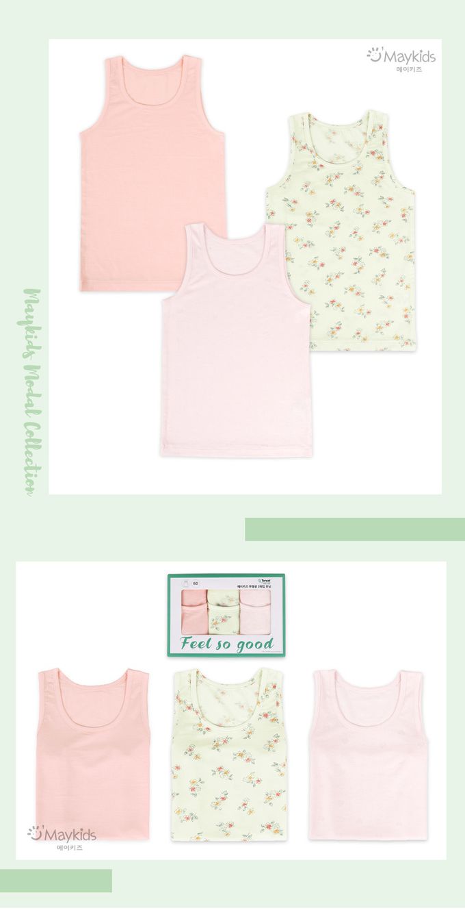 韓國 Maykids - (3入組)女寶天絲莫代爾背心-粉橘X花印
