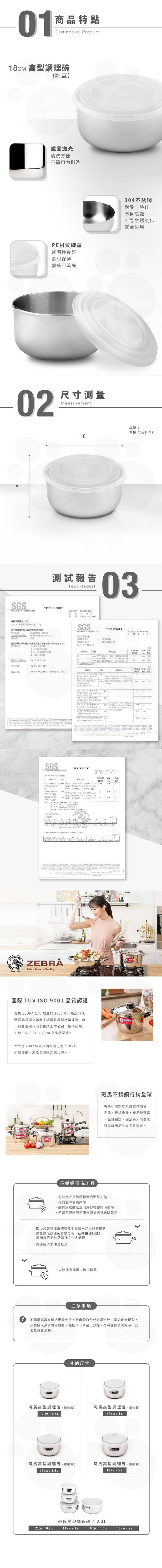 ZEBRA 斑馬 - 304 高型調理碗/保鮮碗(附蓋) (18CM)-2.0L