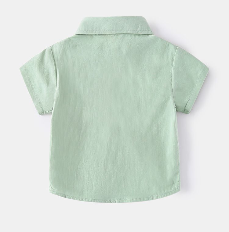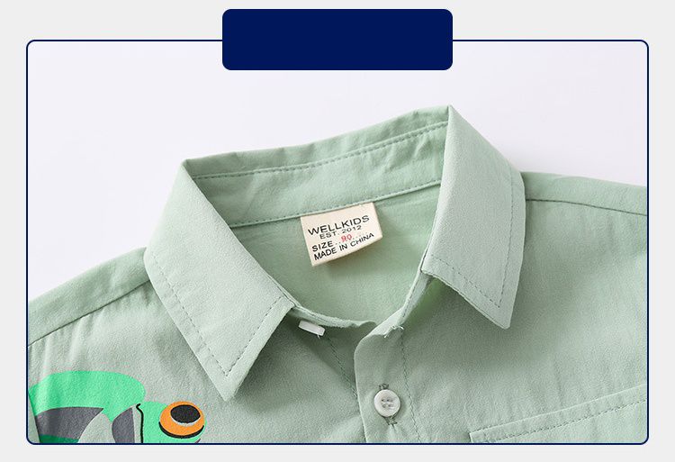 WELLKIDS - 純棉休閒翻領短袖襯衫-青蛙探頭-綠色