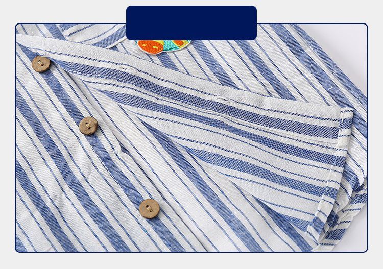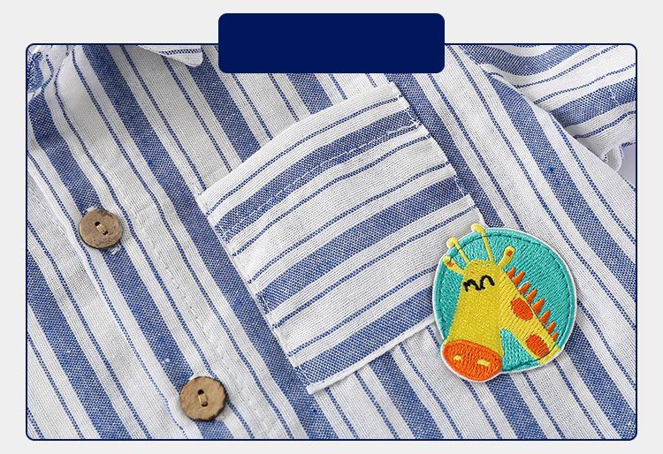 純棉休閒翻領短袖襯衫-長頸鹿徽章-藍色條紋