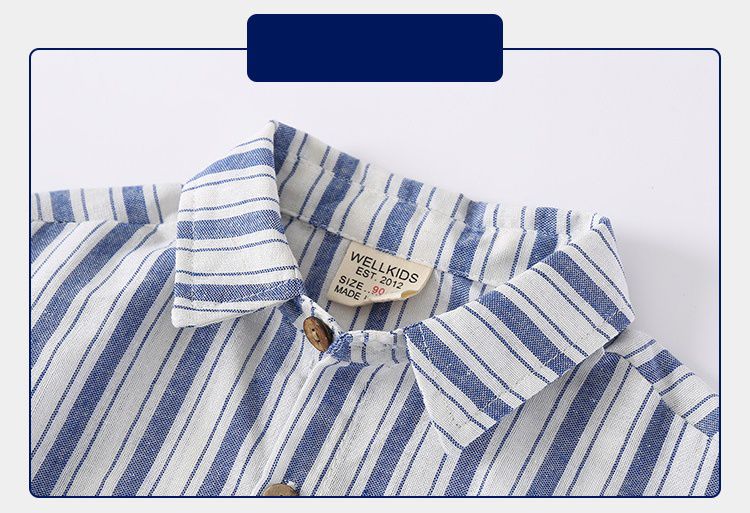 WELLKIDS - 純棉休閒翻領短袖襯衫-紳士小領帶-藍色條紋