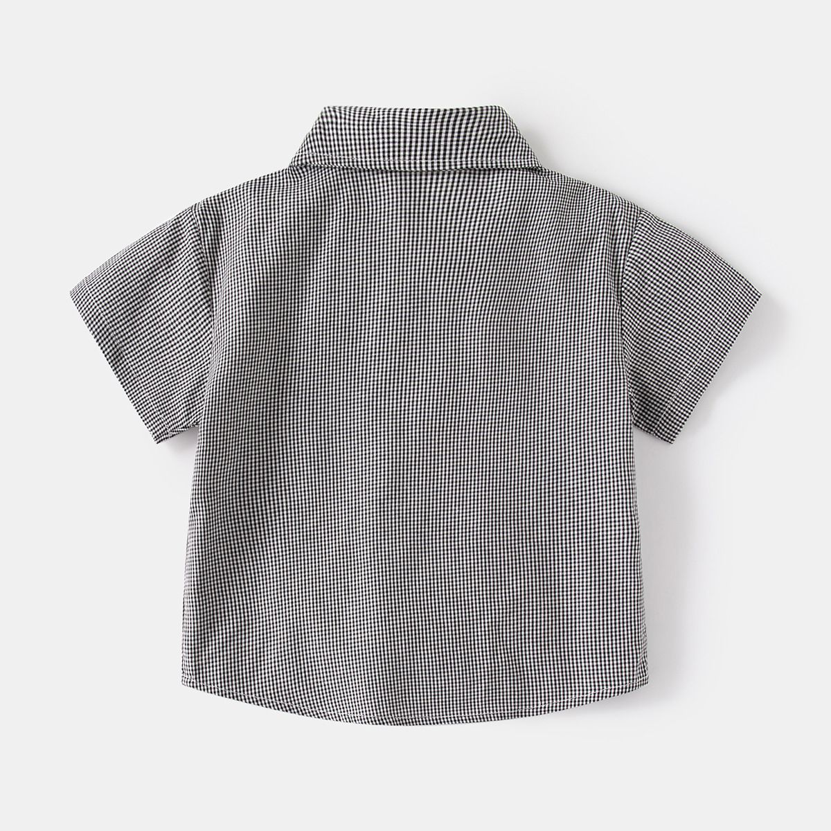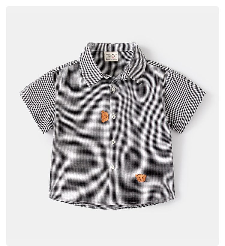 WELLKIDS - 純棉休閒翻領短袖襯衫-小熊領帶-白色