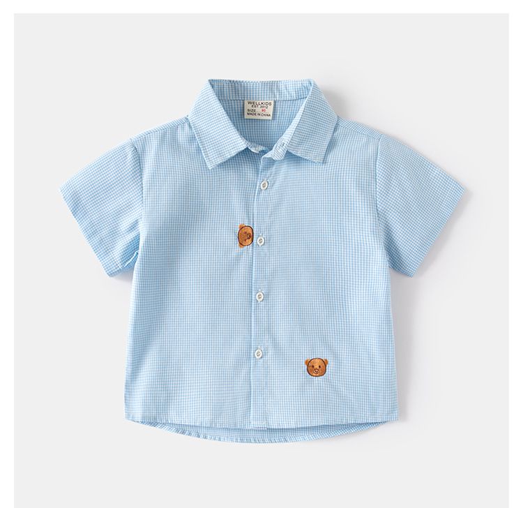 WELLKIDS - 純棉休閒翻領短袖襯衫-繽紛熊熊-藍色