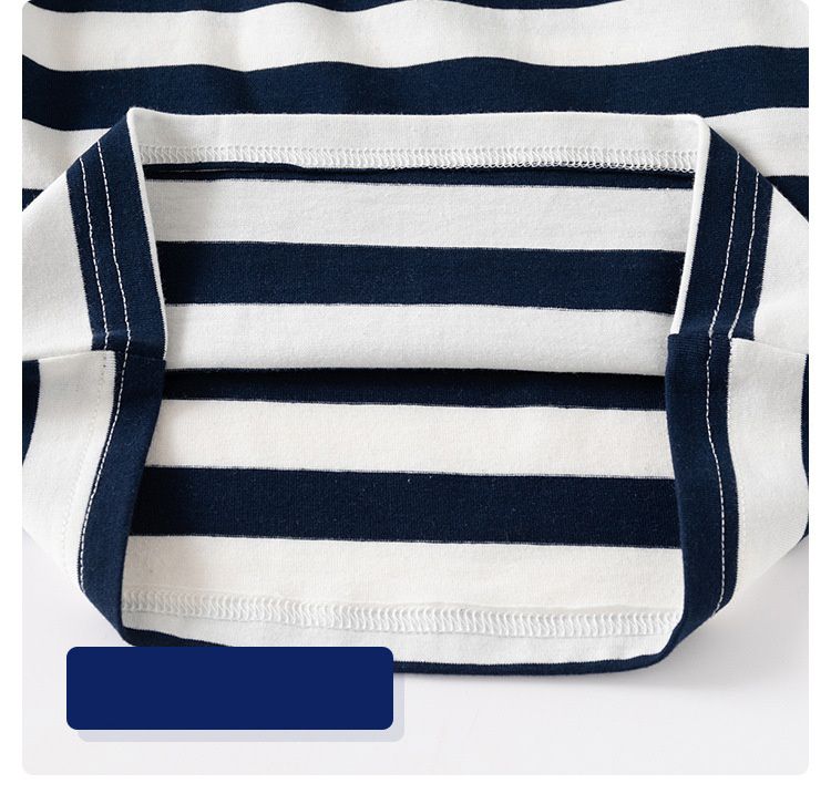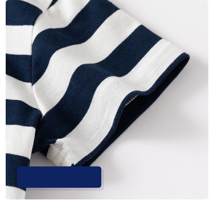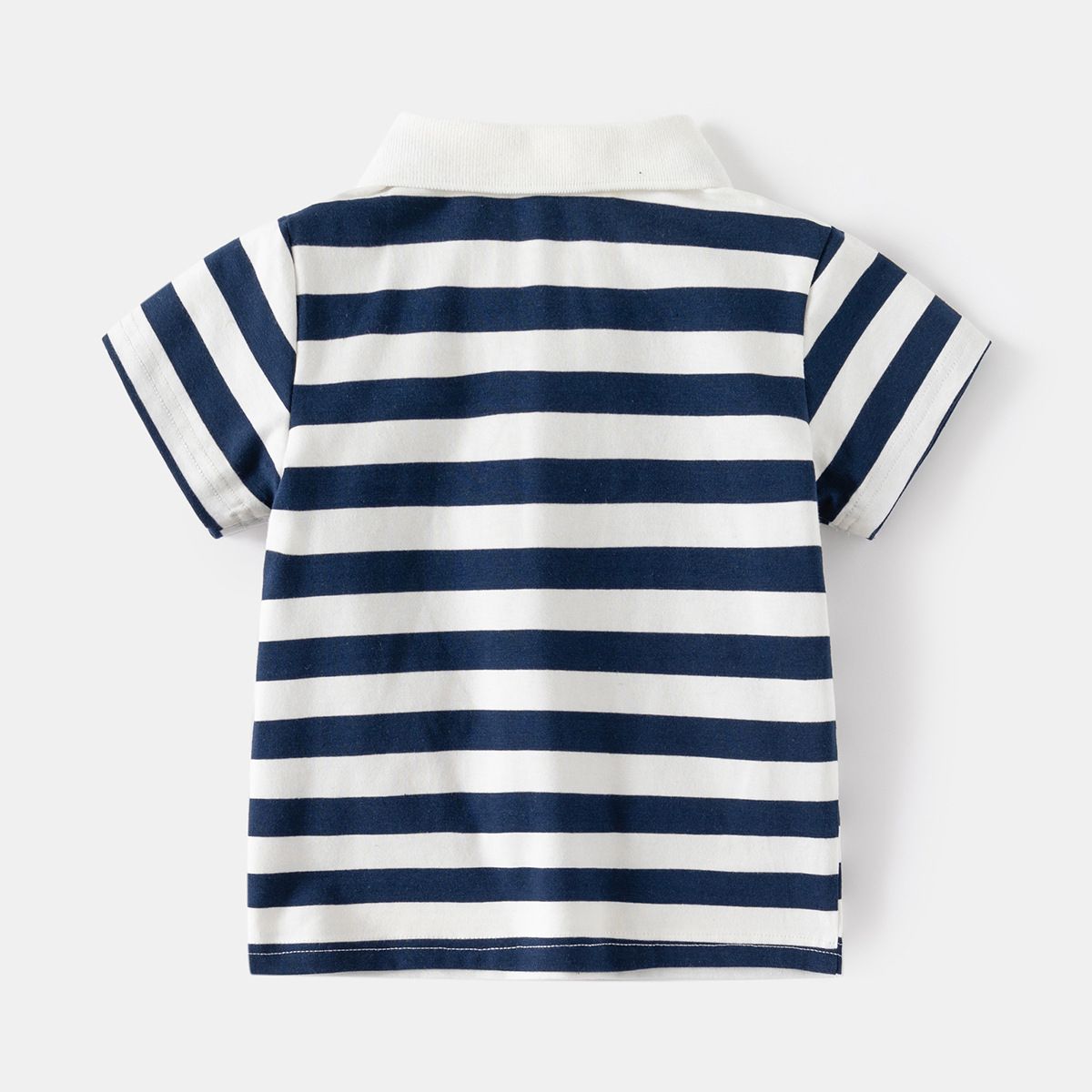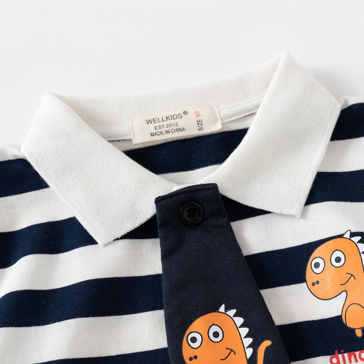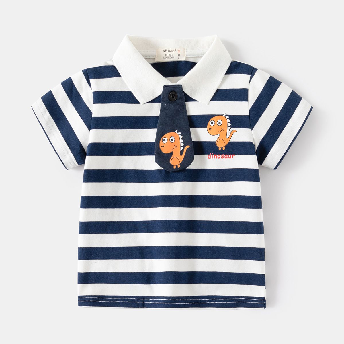 休閒翻領短袖上衣-恐龍小領帶-藏青條紋