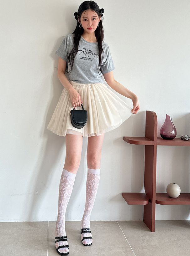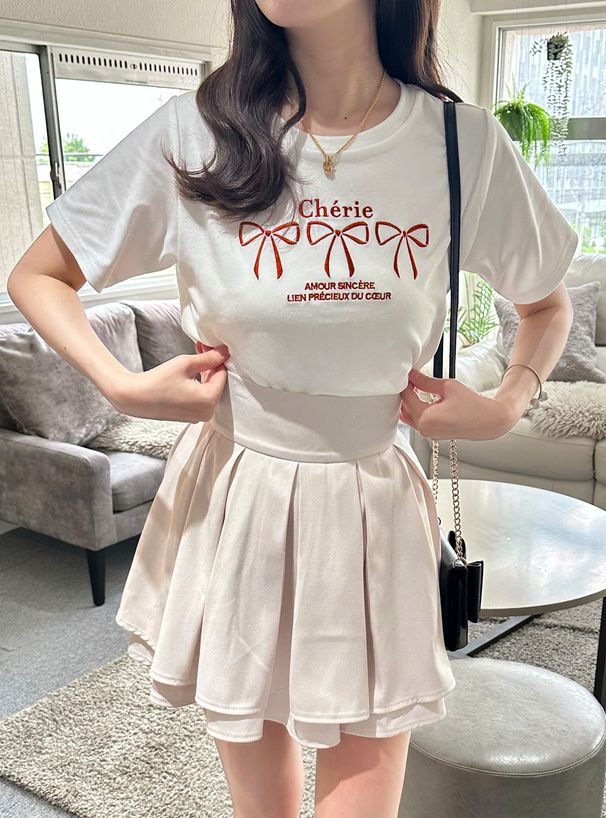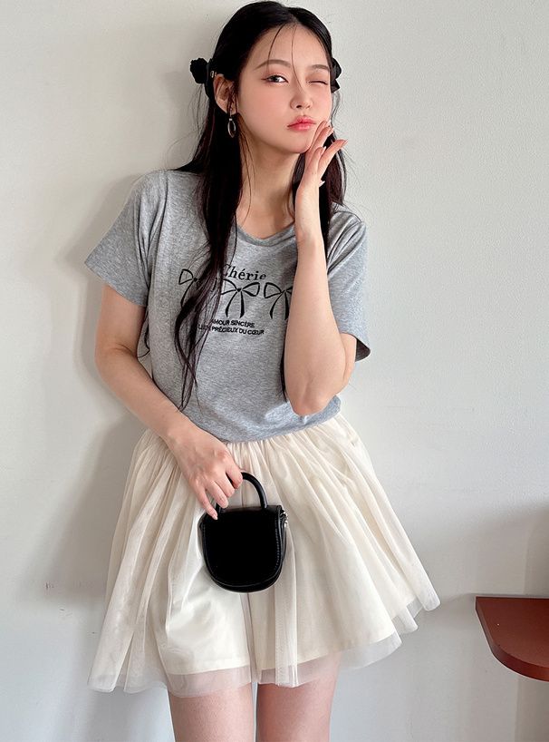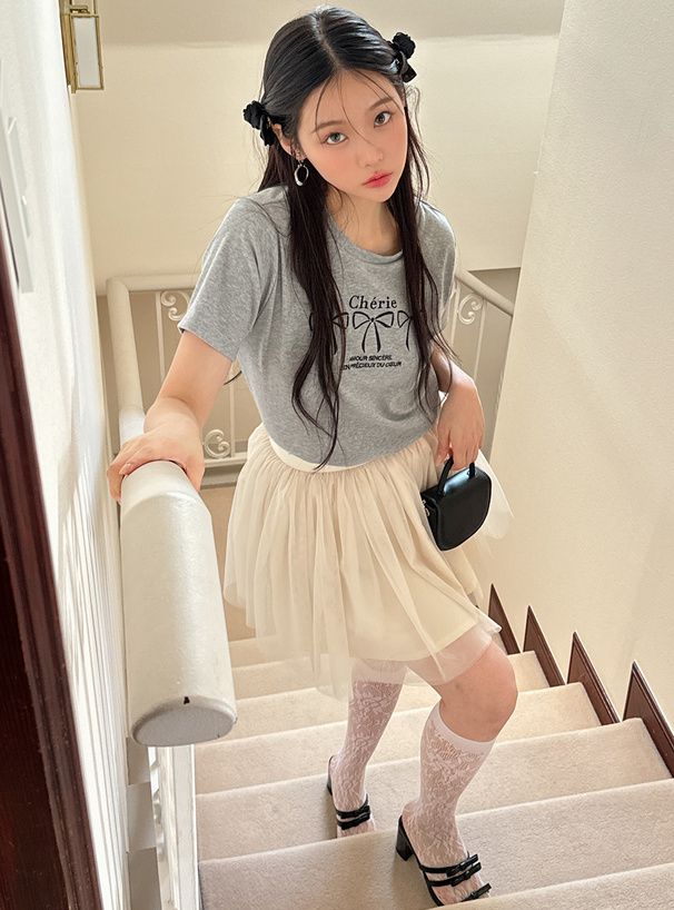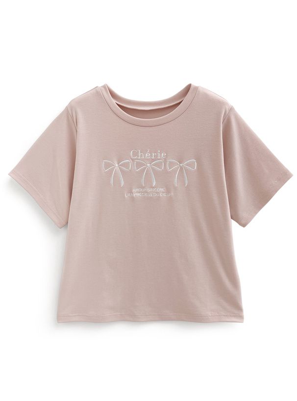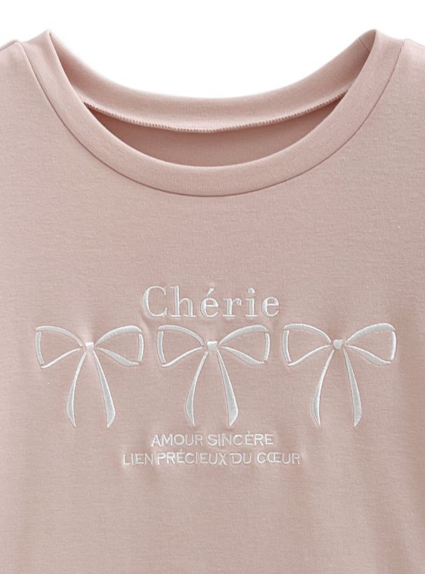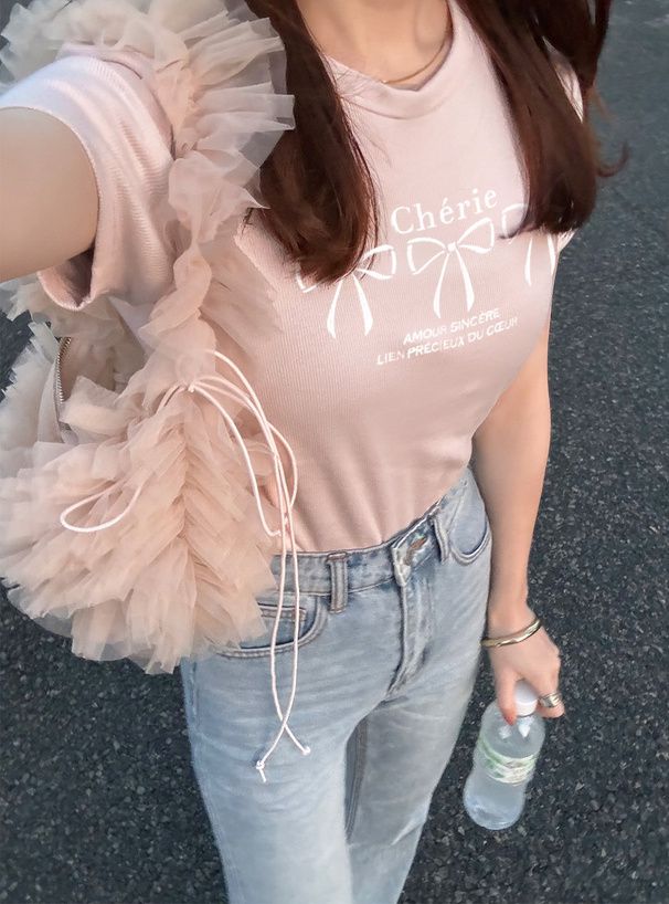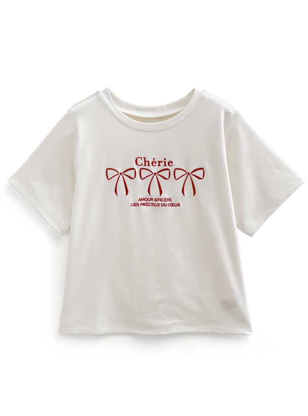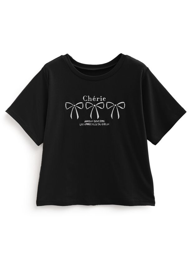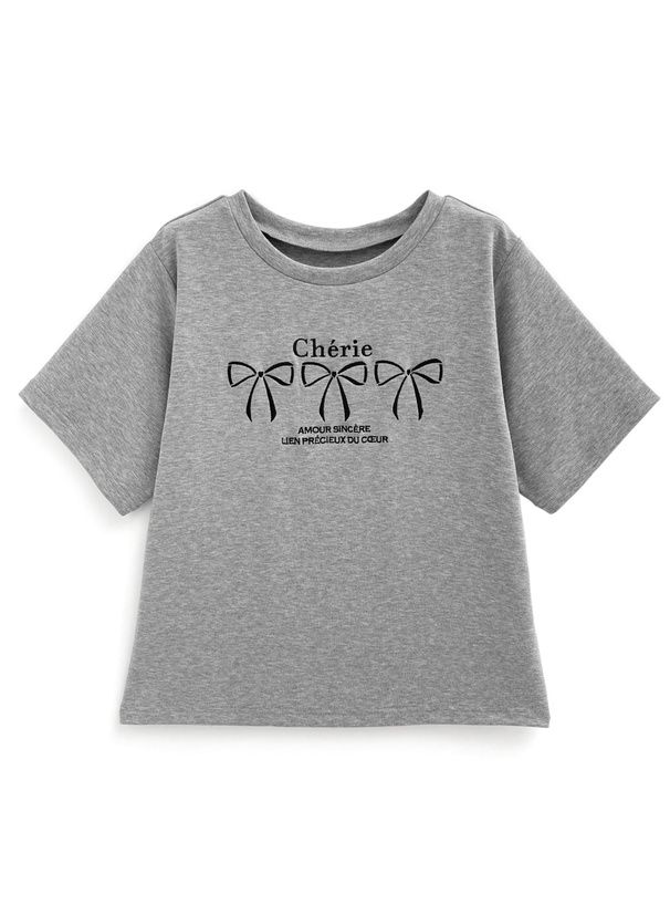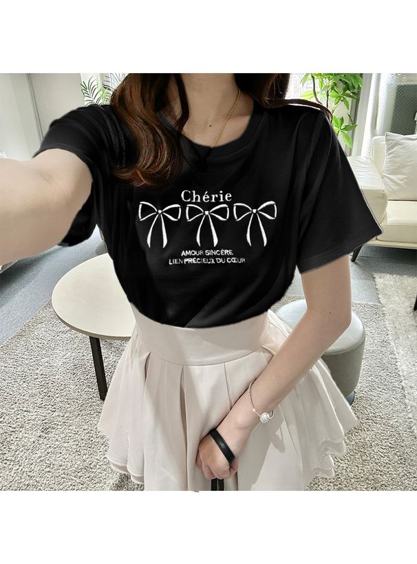 法式少女蝴蝶結印花T恤