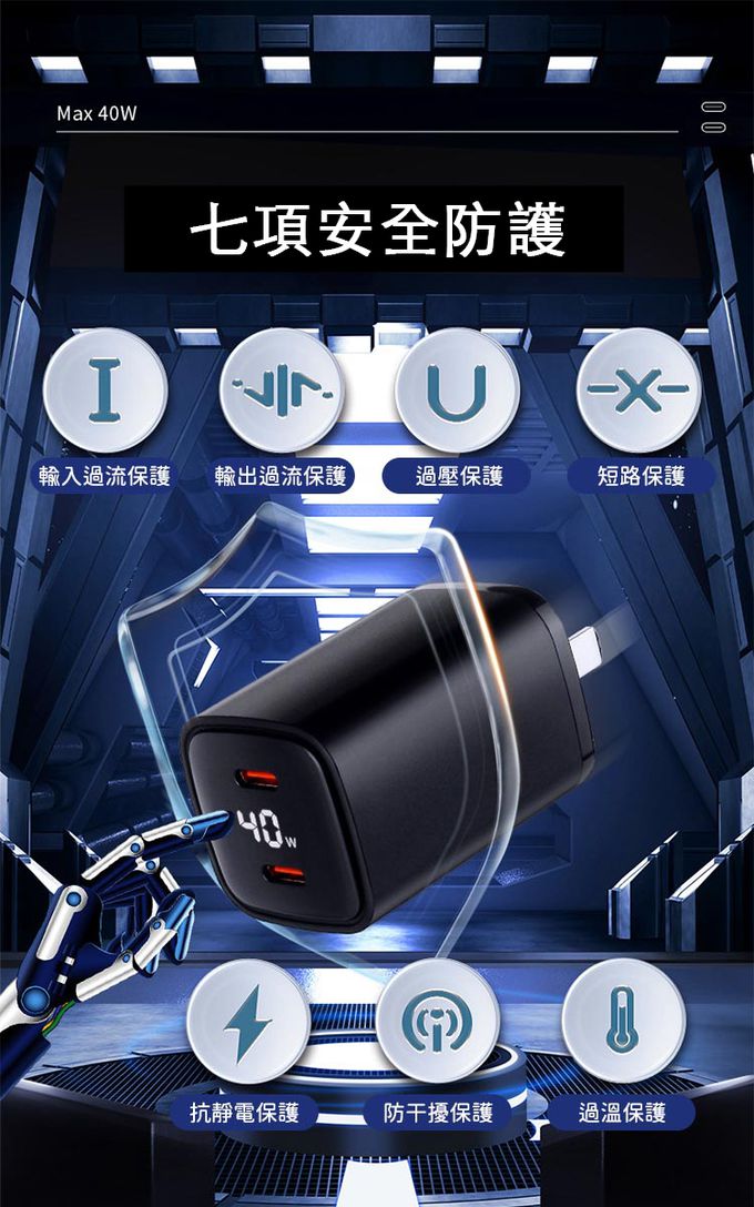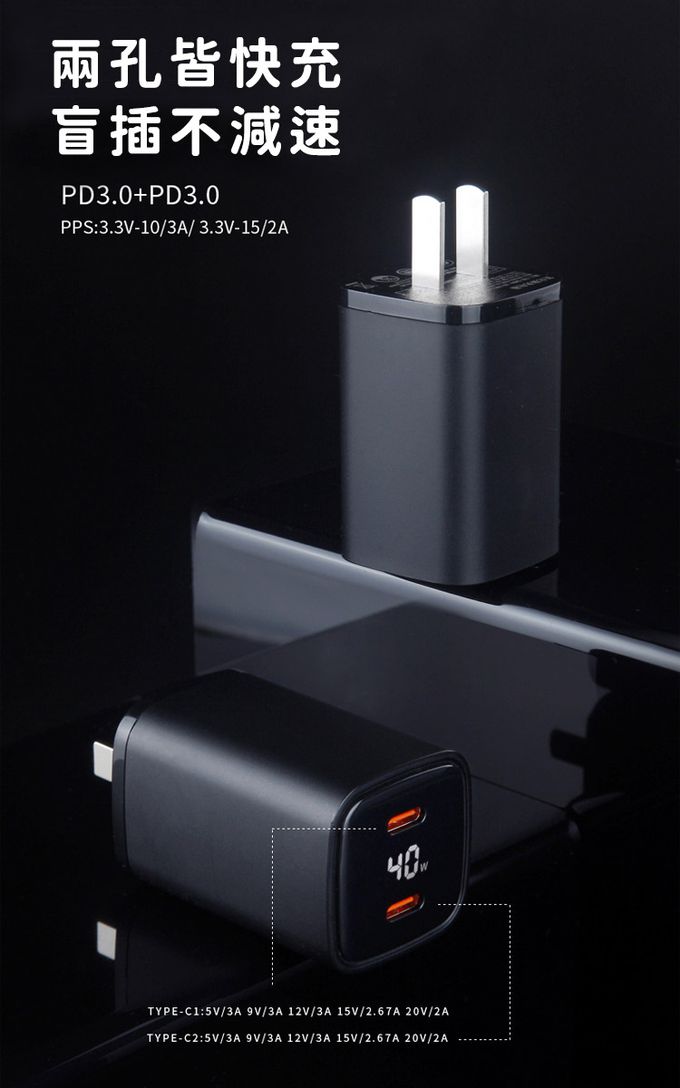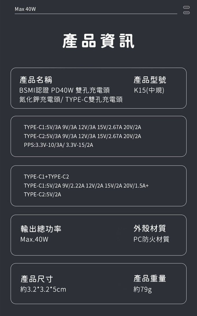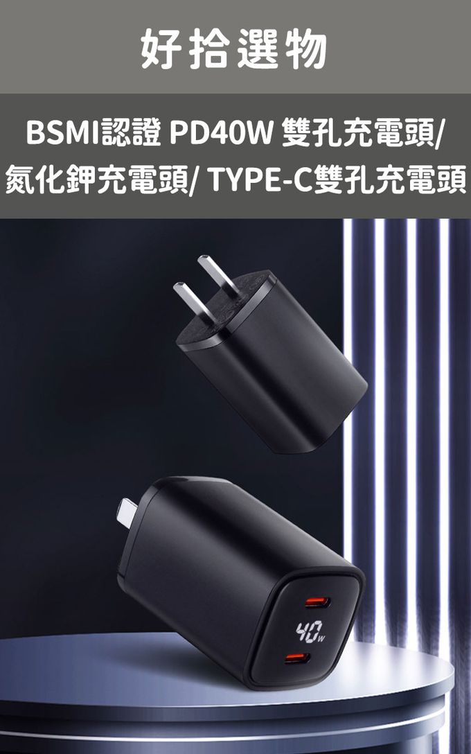 品名:BSMI認證 PD40W 雙孔充電頭/氮化鉀充電頭/ TYPE-C雙孔充電頭