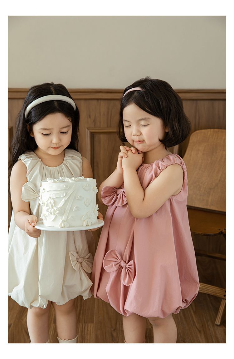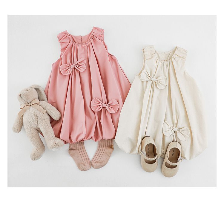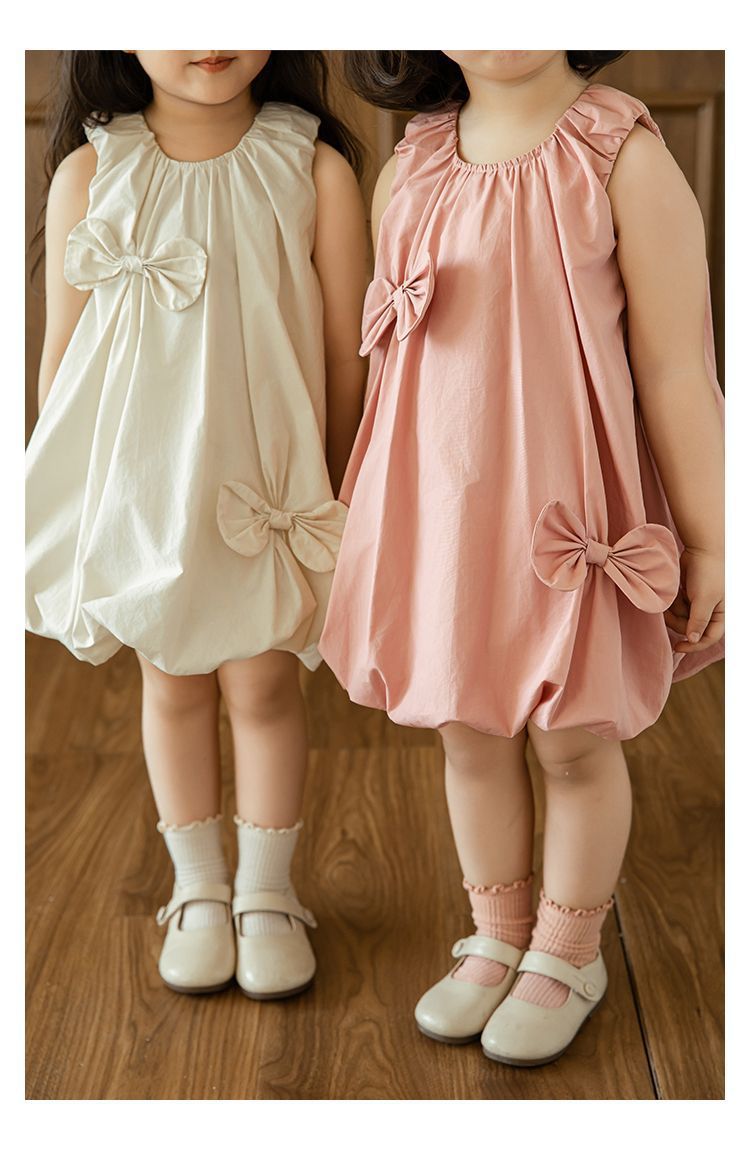 品名:純棉手工縫製蝴蝶結花苞洋裝