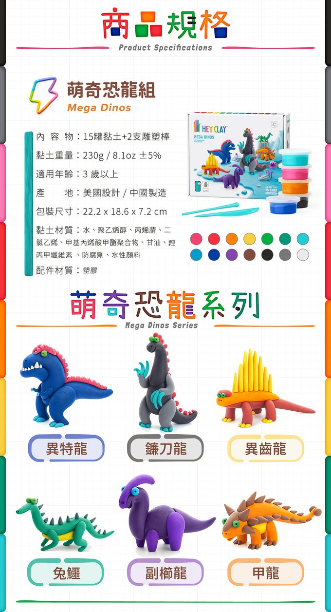 品名:智塑輕黏土-萌奇恐龍組(15罐黏土+2隻雕塑棒)