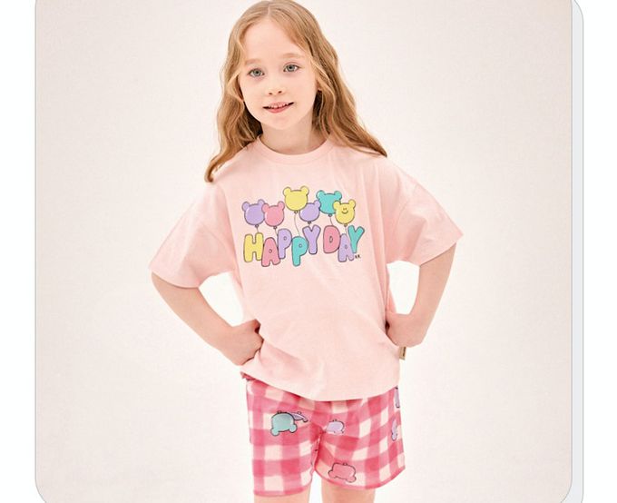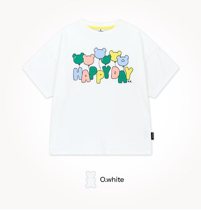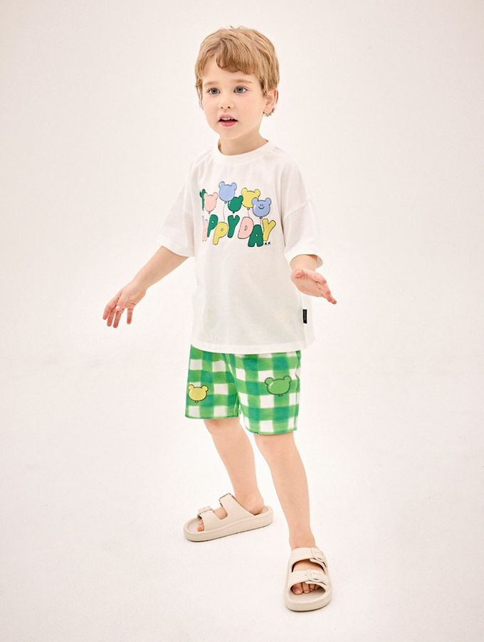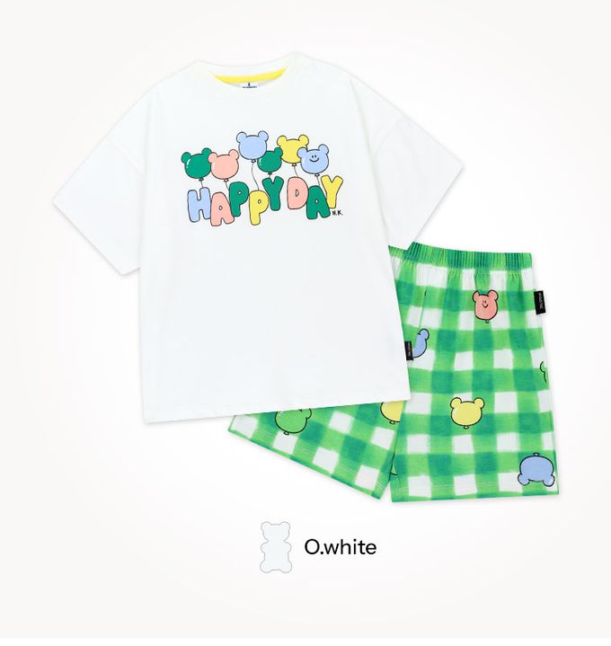 韓國 Jelispoon - HAPPY氣球熊短袖套裝-白X綠