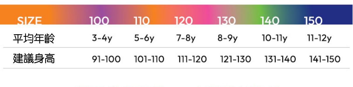 尺寸從90-150公分都有,大小孩和小寶貝都可以穿!