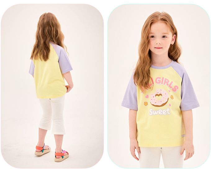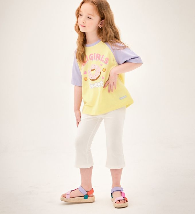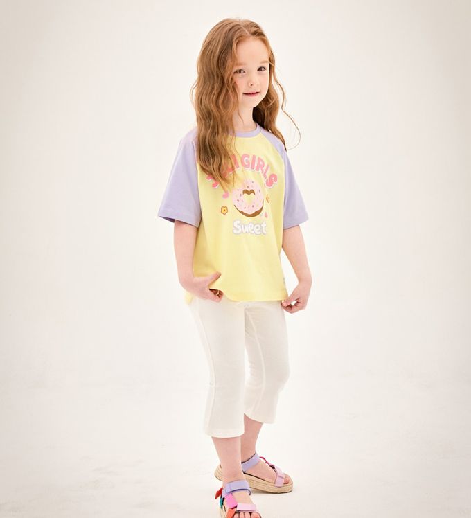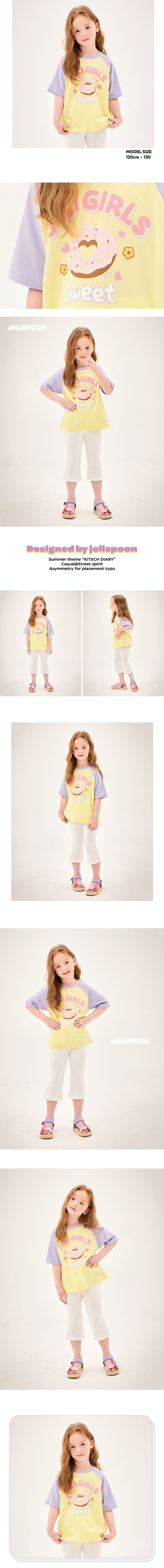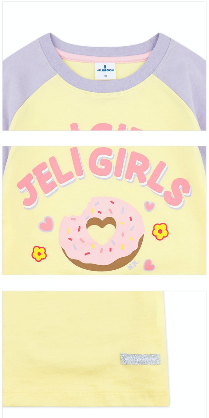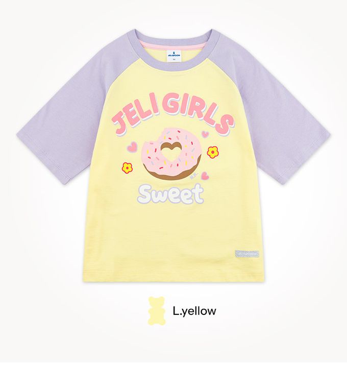 韓國 Jelispoon - 甜蜜甜甜圈印短袖上衣-淺紫X淺黃