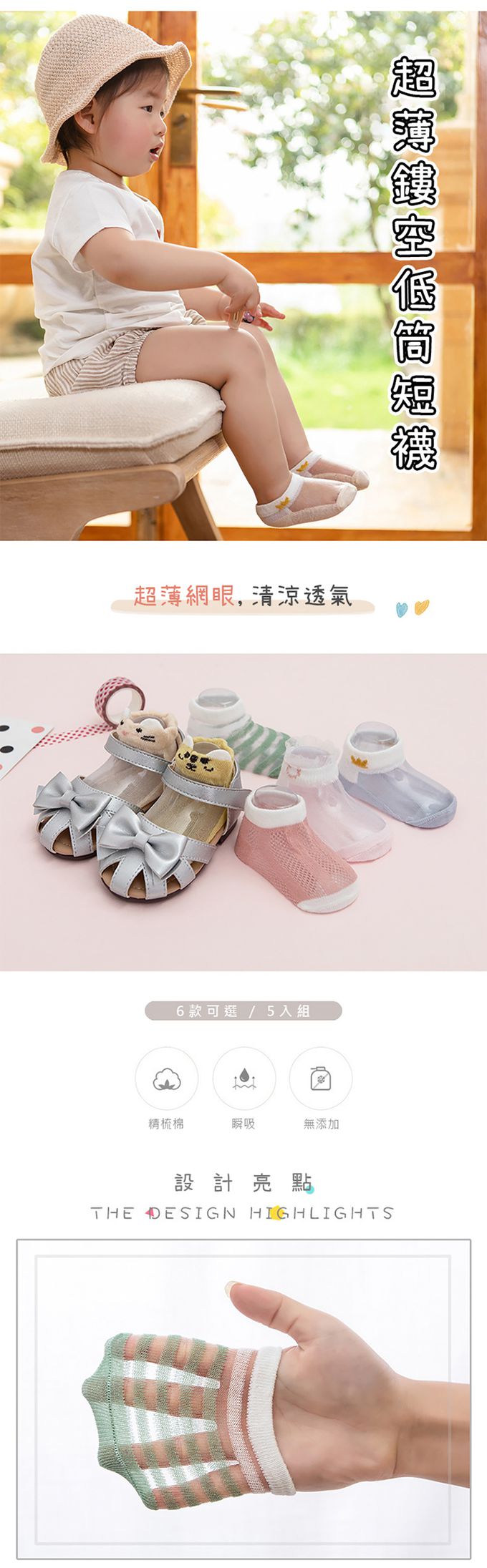 品名:5雙入-嬰兒襪 超薄棉鏤空嬰幼寶寶 冰絲船襪
