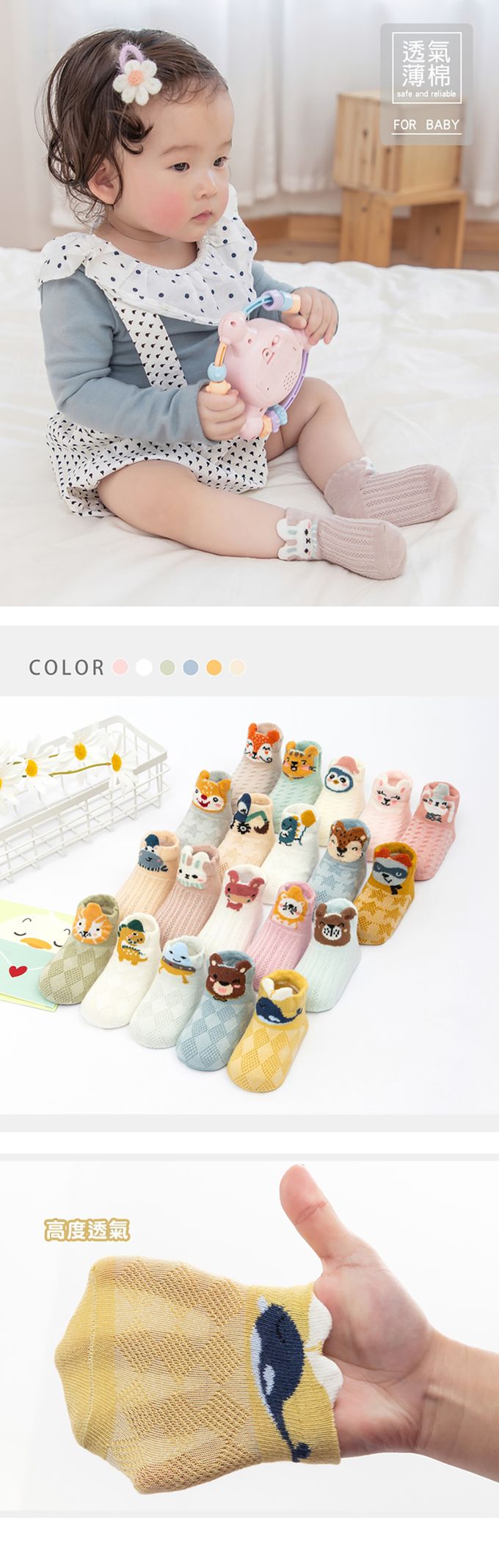 品名:5雙入-嬰兒襪 春夏薄棉童襪 襪子 造型透氣孔