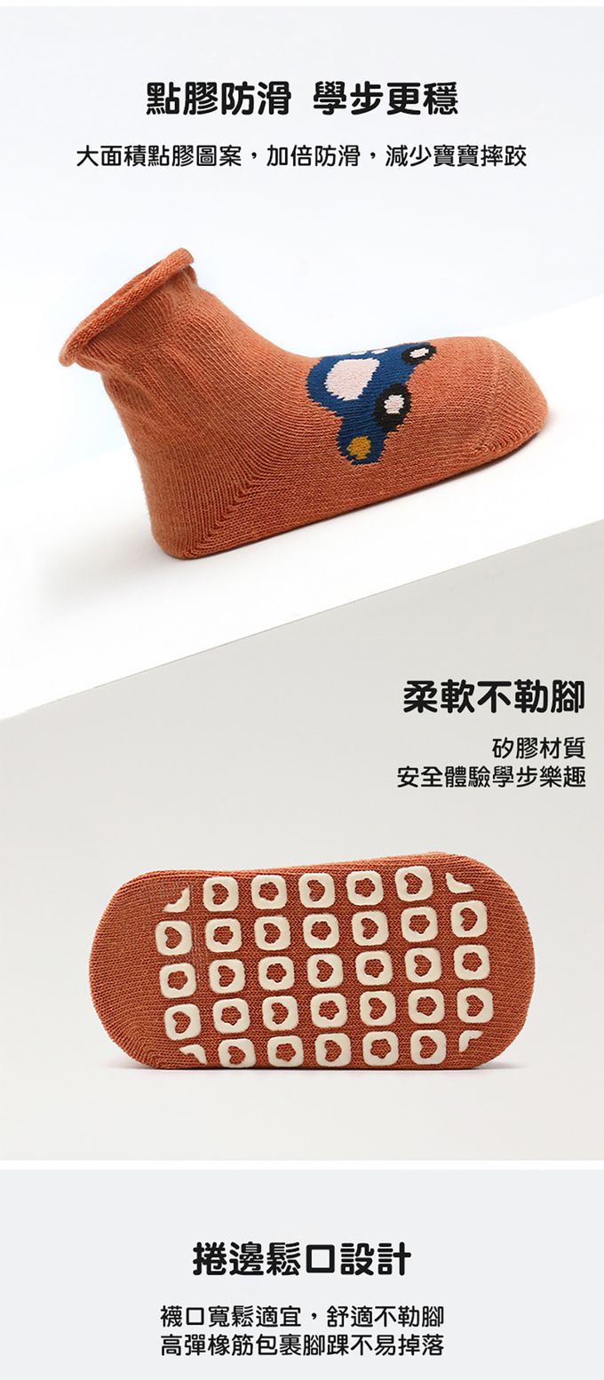 品名:3雙入-捲邊止滑襪 寶寶襪 學步襪 滿版大點膠