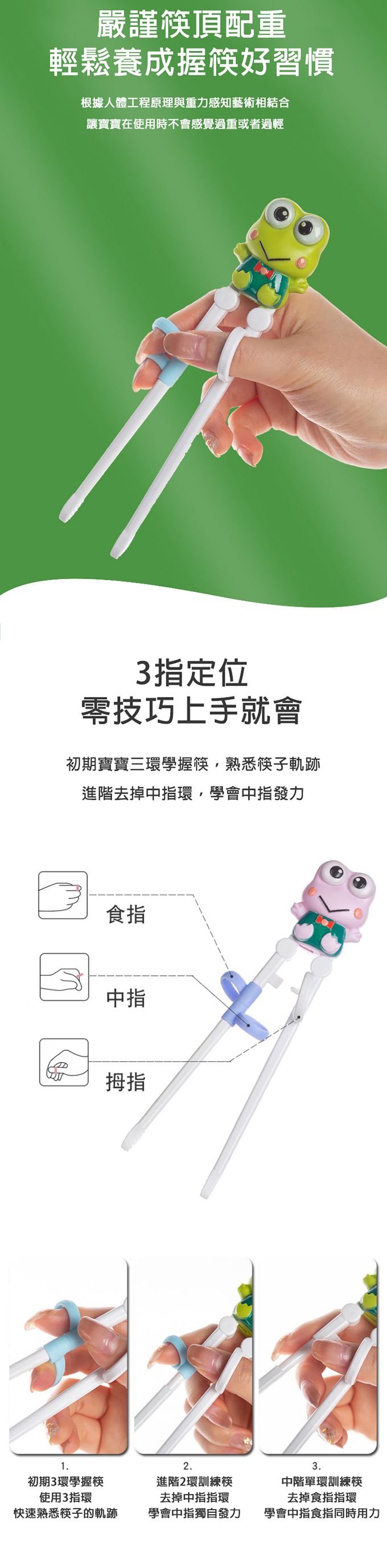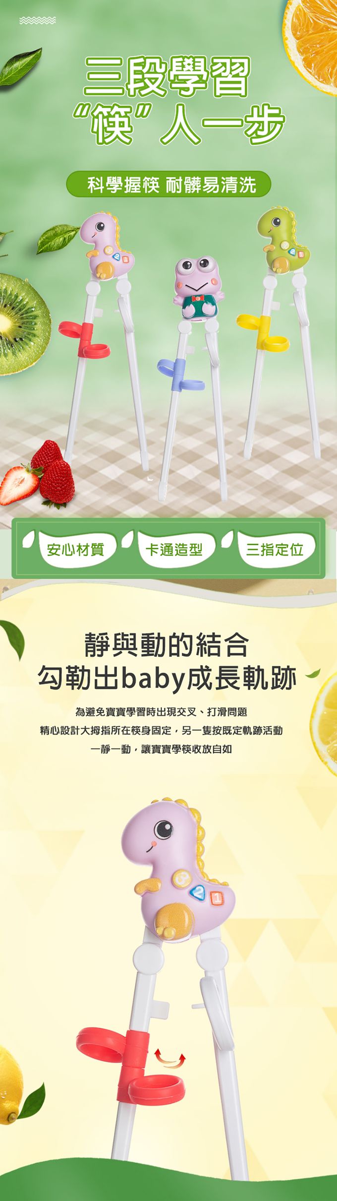 1雙入-三階段學習筷 幼兒學吃飯餐具 恐龍造型學習筷-綠色小恐龍