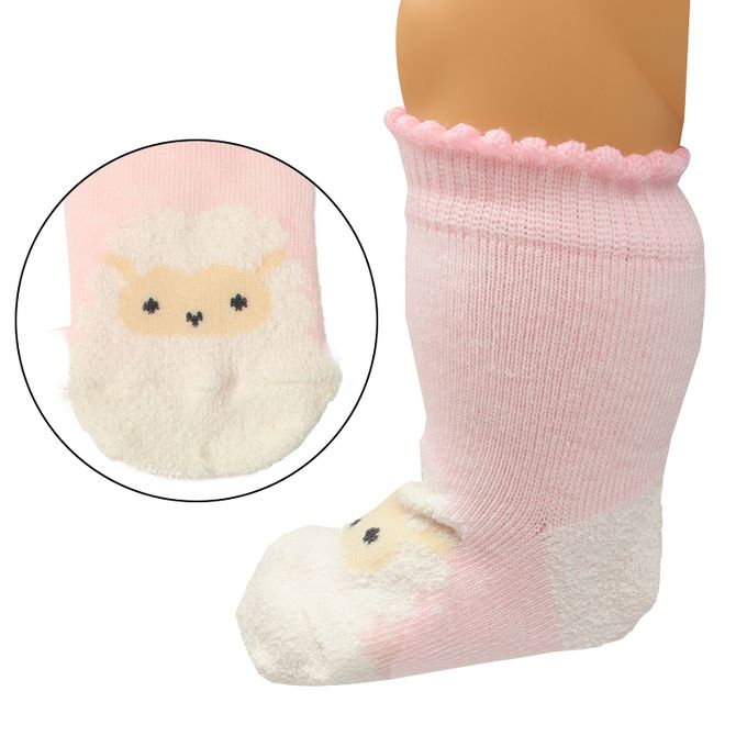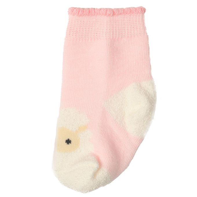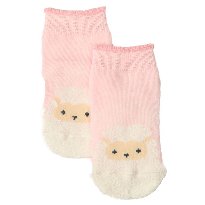 新生兒直角襪-毛茸茸小羊-粉紅色 (7~9cm)-日本製
