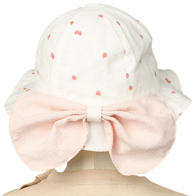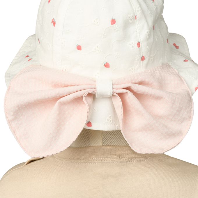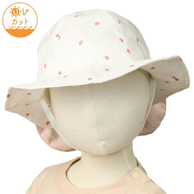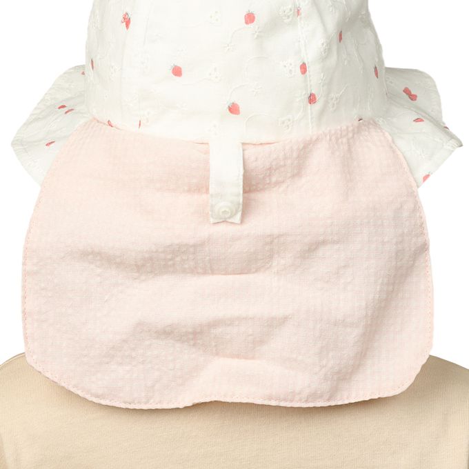 圓頂帽-草莓 附防曬遮陽布-米白色
