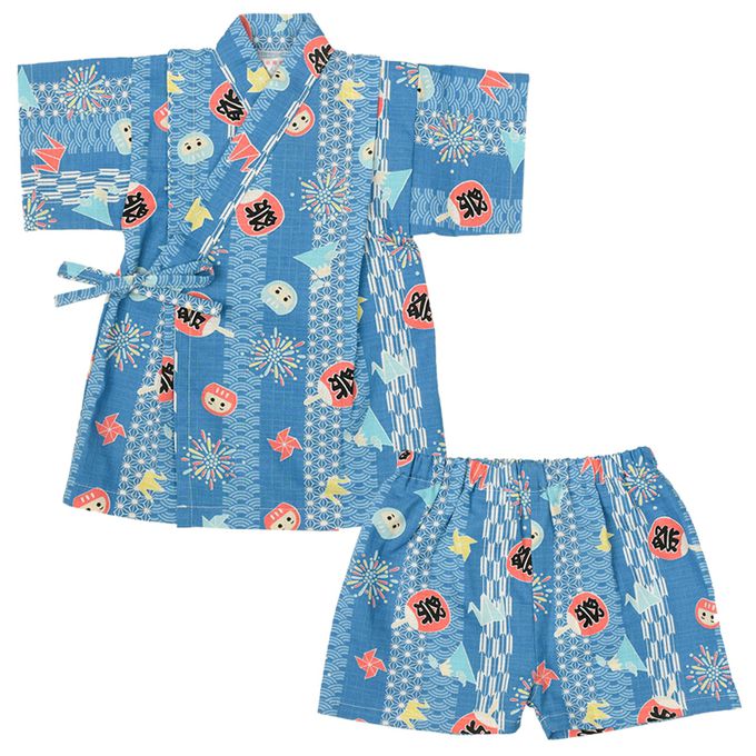 akachan honpo - 幼兒兩件式甚平-不倒翁-米白色