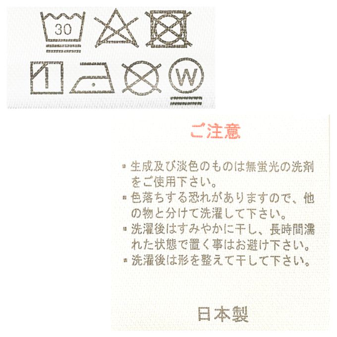 注意事項:●標示內容遵照台灣法規之規定。●請使用不含螢光增白劑的洗劑。●請勿在潮濕的狀態下長時間密封放置。