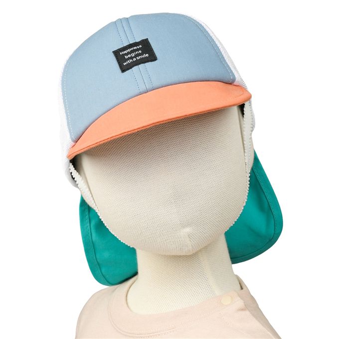 網眼棒球帽-彩色色塊 附防曬遮陽布-藍色