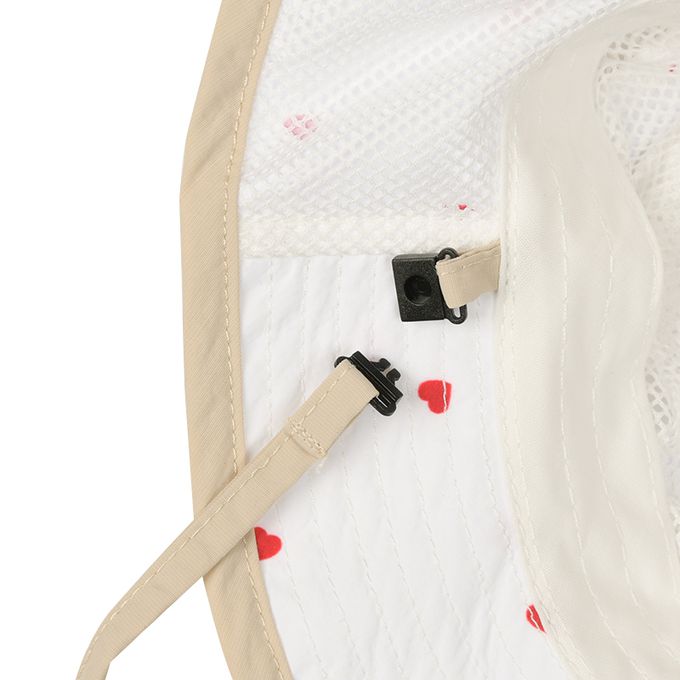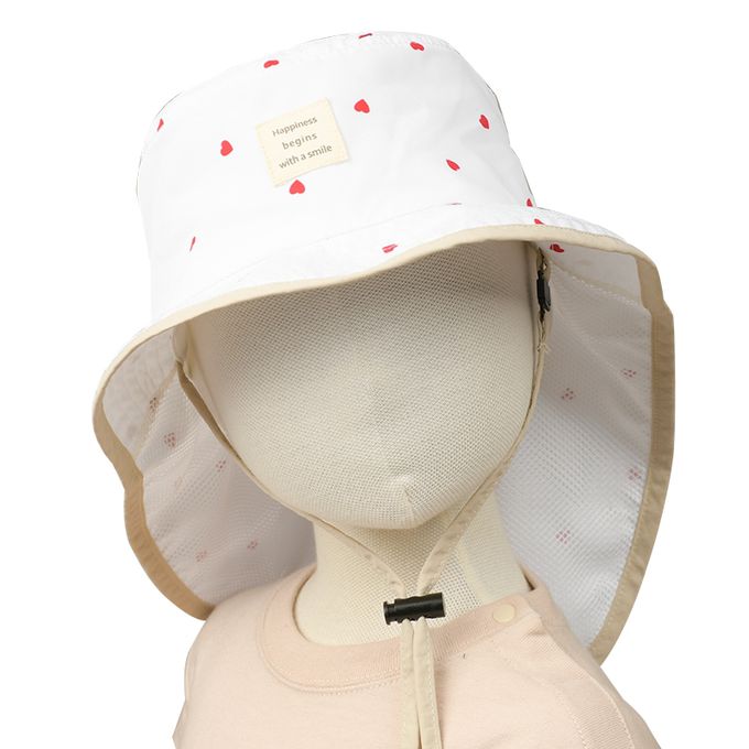 外出活動時非常需要的防曬遮陽布和帽子本體是一體成形的。