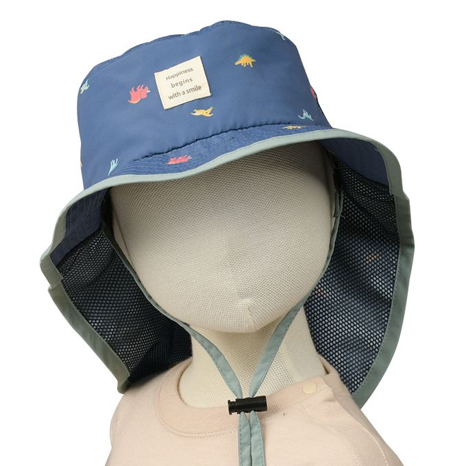 外出活動時非常需要的防曬遮陽布和帽子本體是一體成形的。