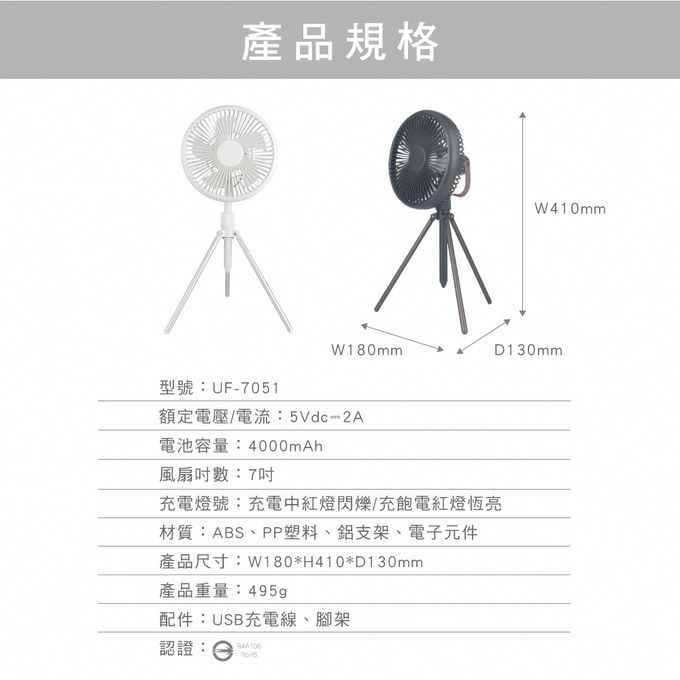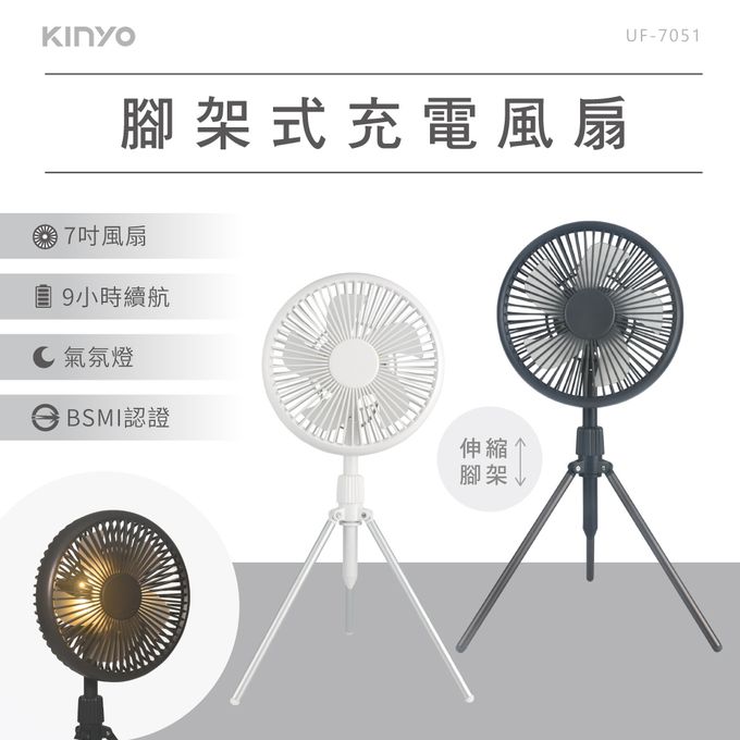 品名:腳架式充電風扇7吋 UF-7051