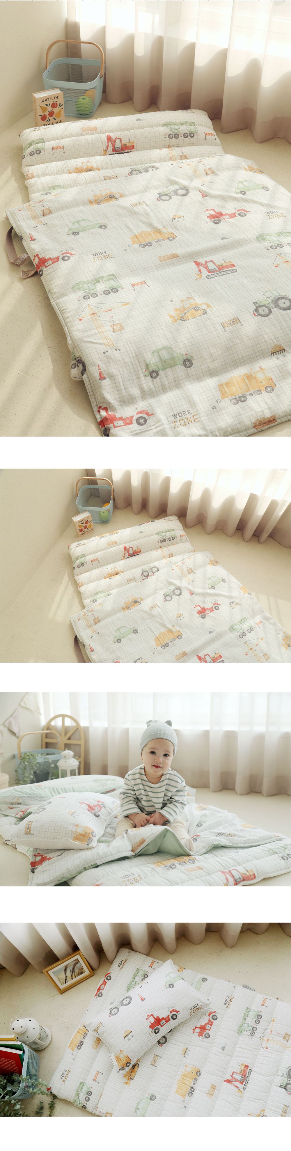 睡墊有兩種用途,直接當遊戲墊,或是加入枕芯就變身成兒童睡袋啦!