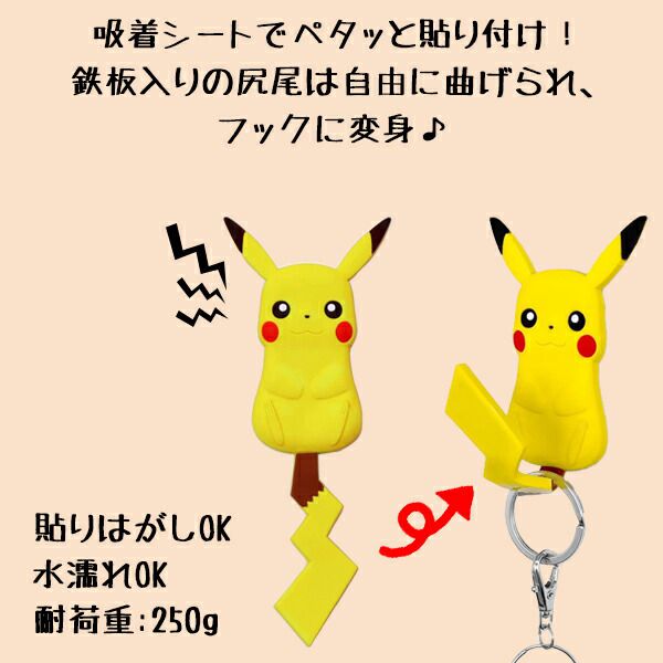 可彎折黏貼式置物掛鉤-耐重250g-皮卡丘(女) (約W8.7×H18.5cm)