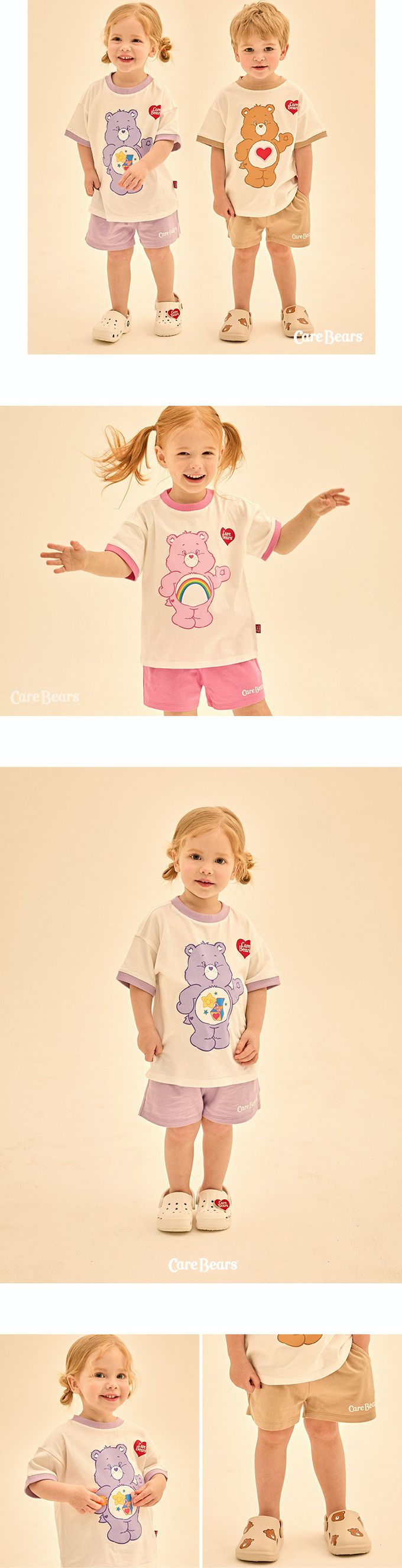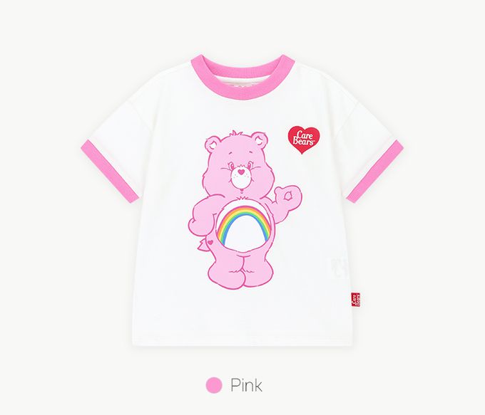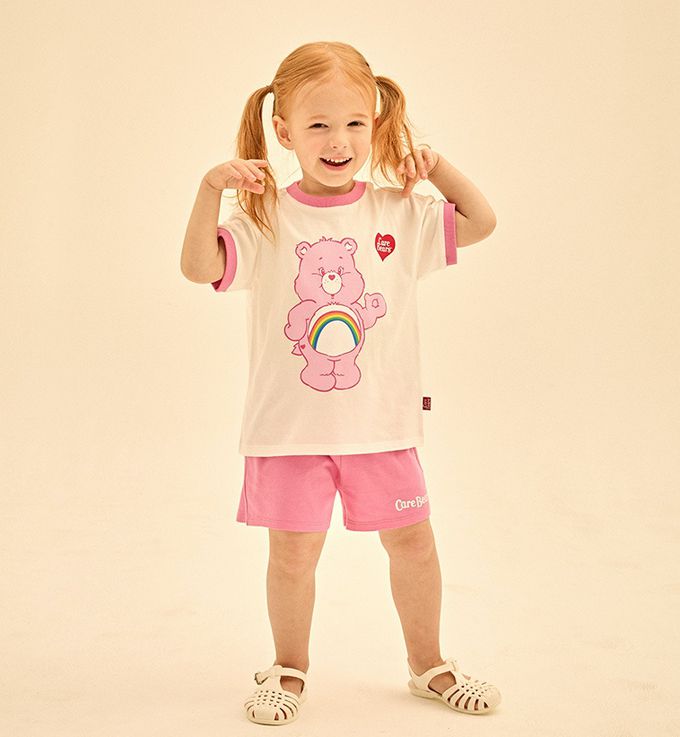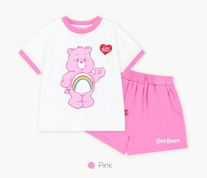 韓國 Care Bears - 聯名款大彩虹熊短袖套裝-桃粉
