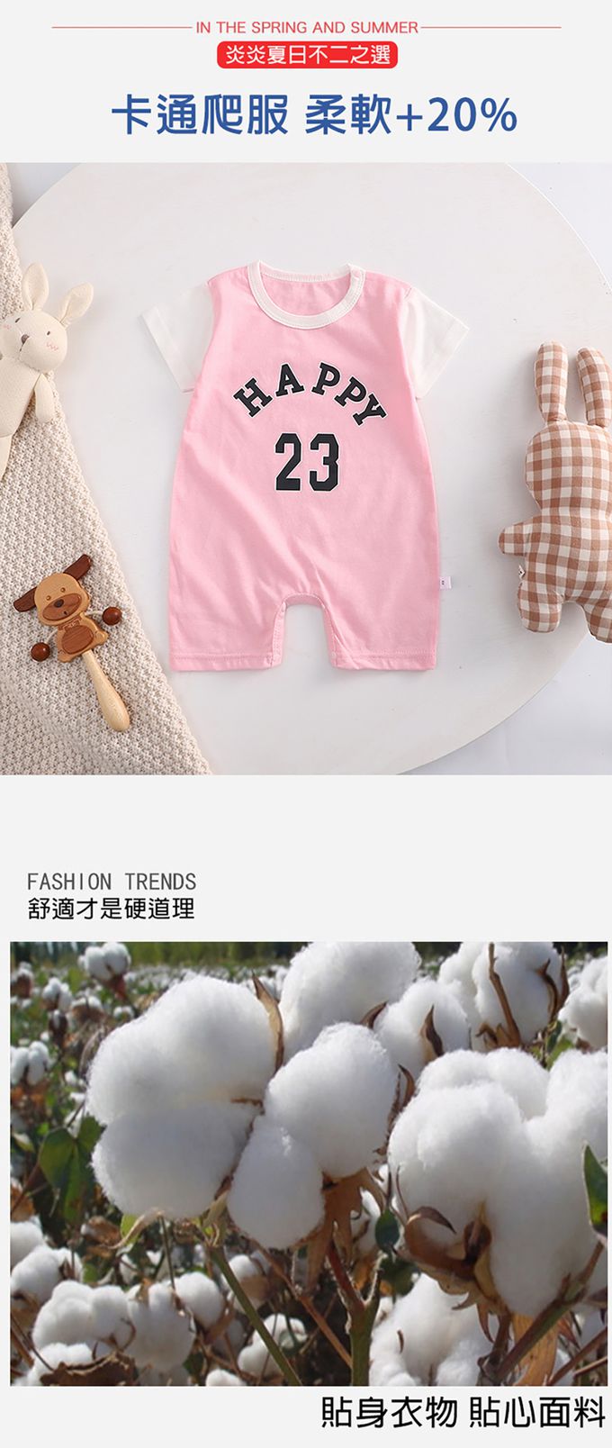 短袖包屁衣 薄款透氣卡通連身衣-23粉