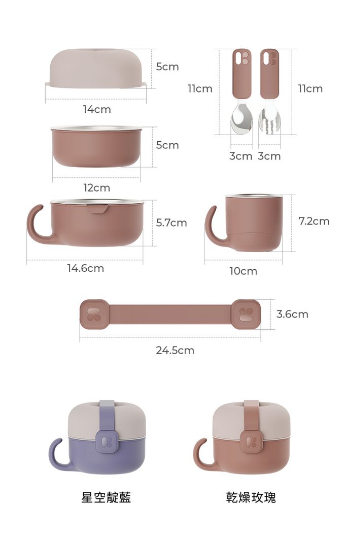 Hug 外出豪華不鏽鋼餐具多件組-乾燥玫瑰