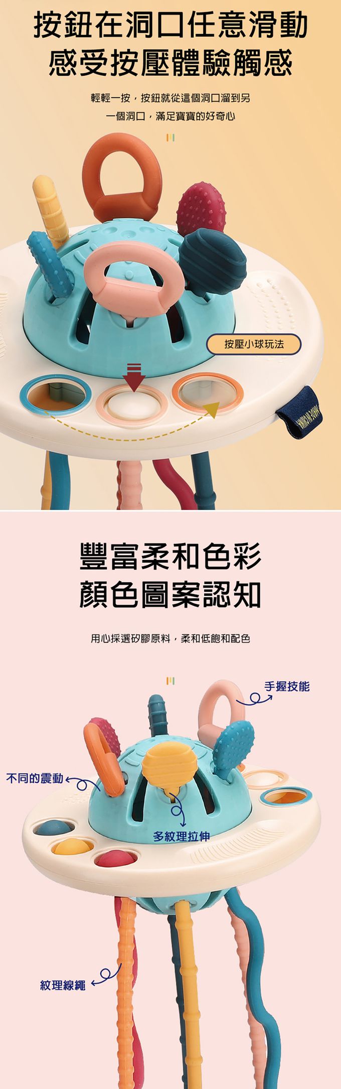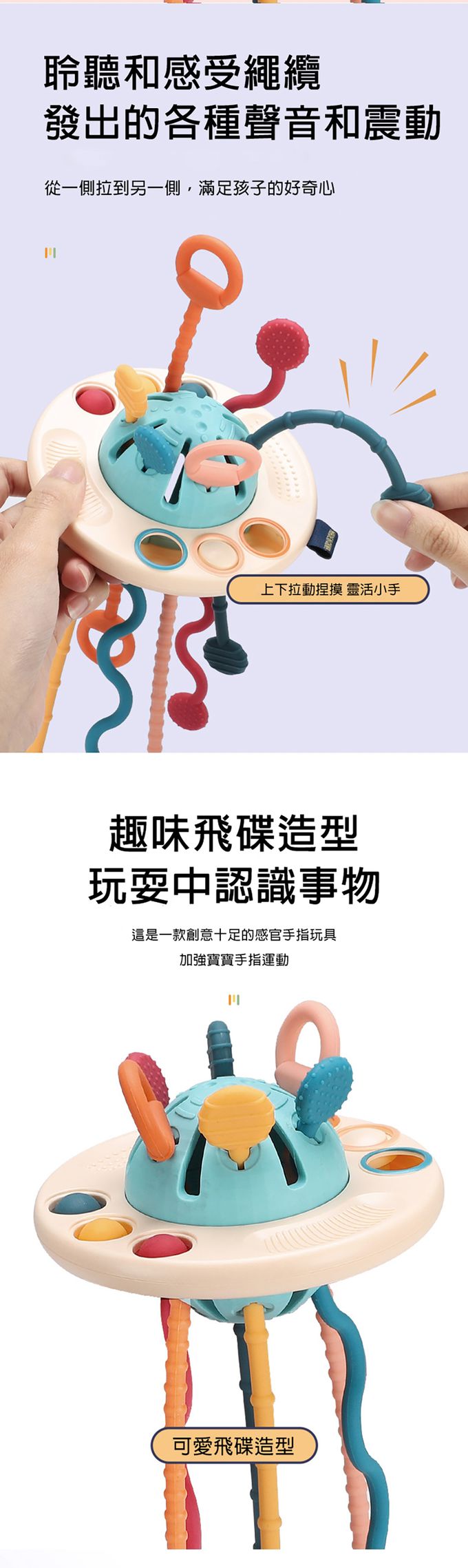 1.創意飛碟造型,精巧設計有助於寶寶手指感官訓練