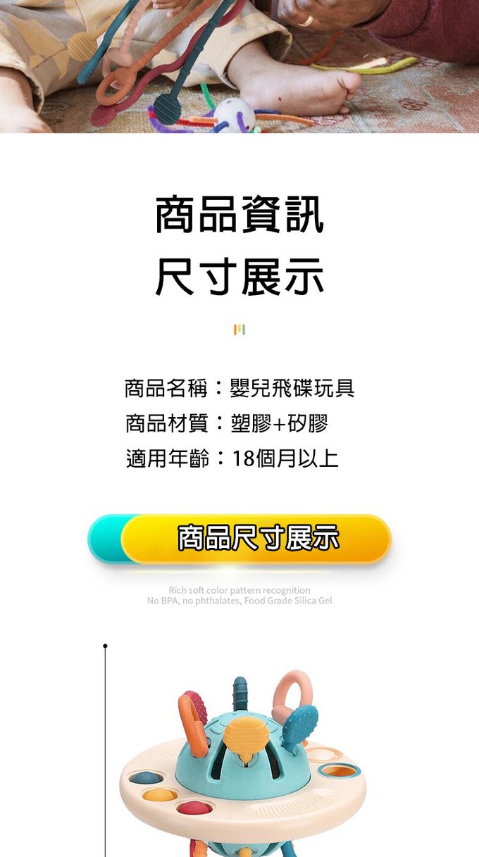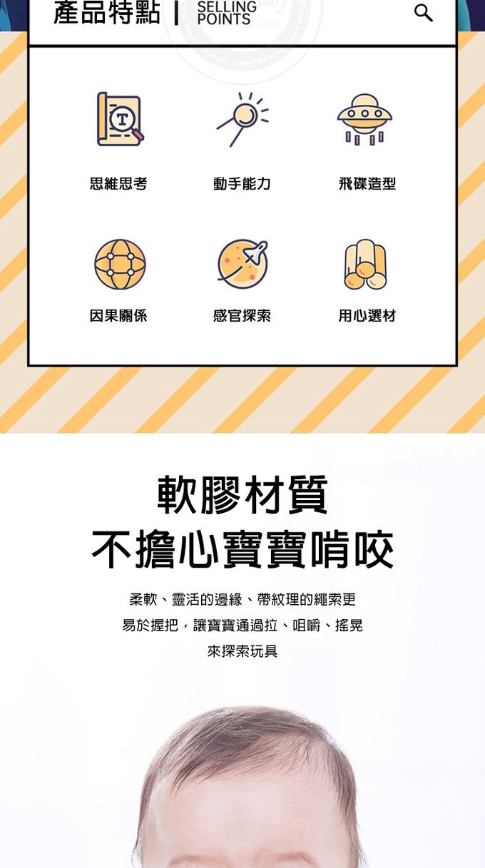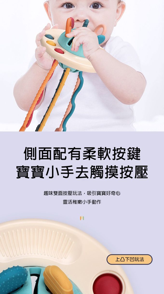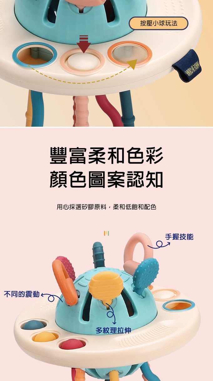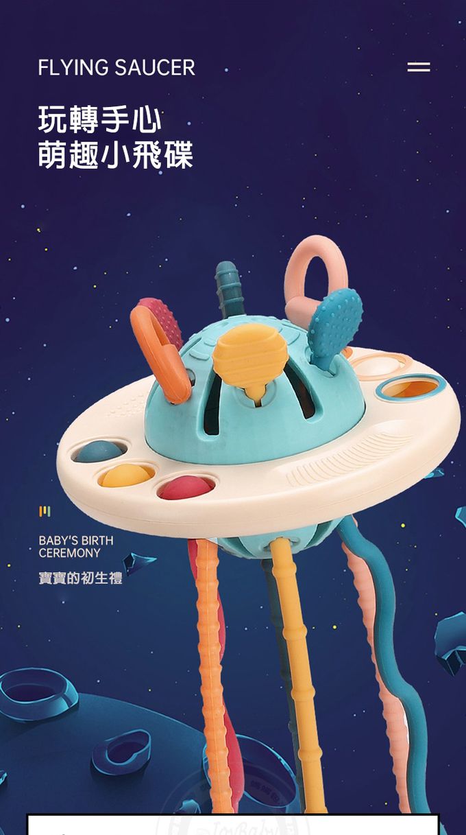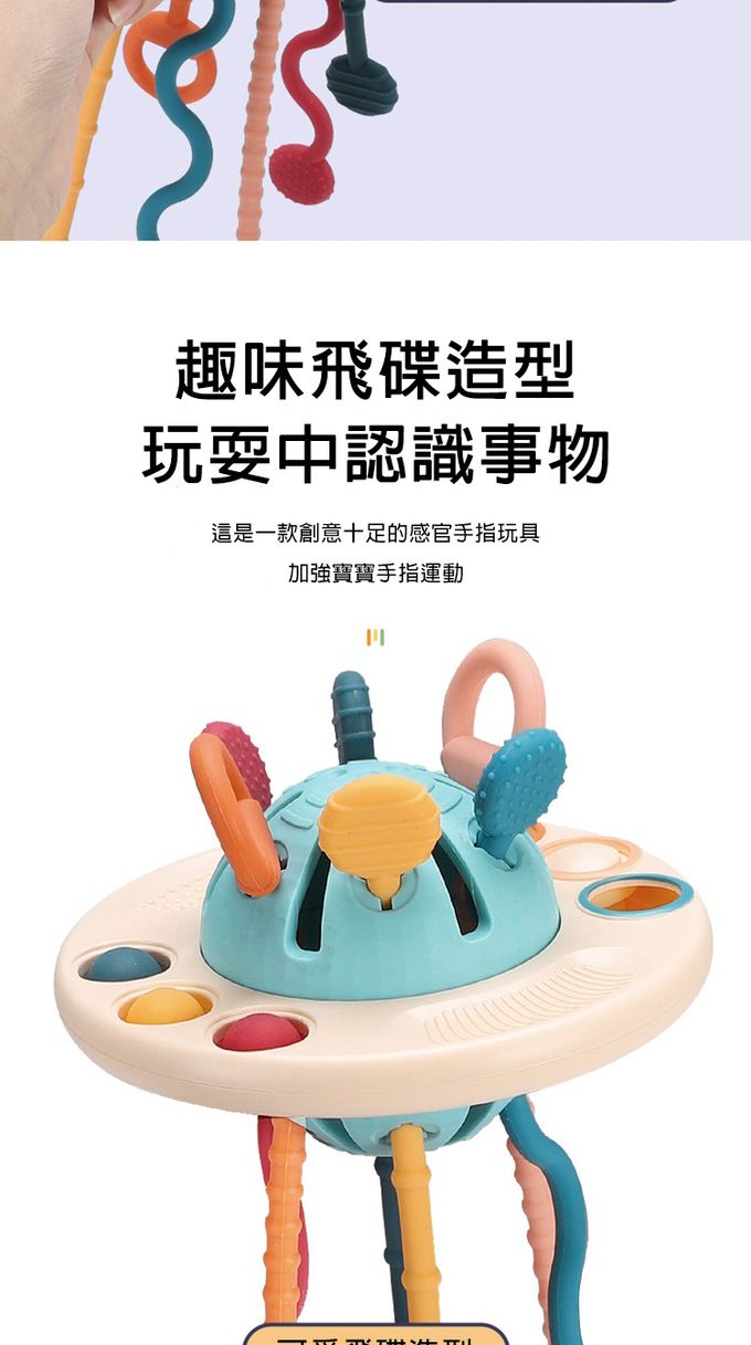 1.創意飛碟造型,精巧設計有助於寶寶手指感官訓練