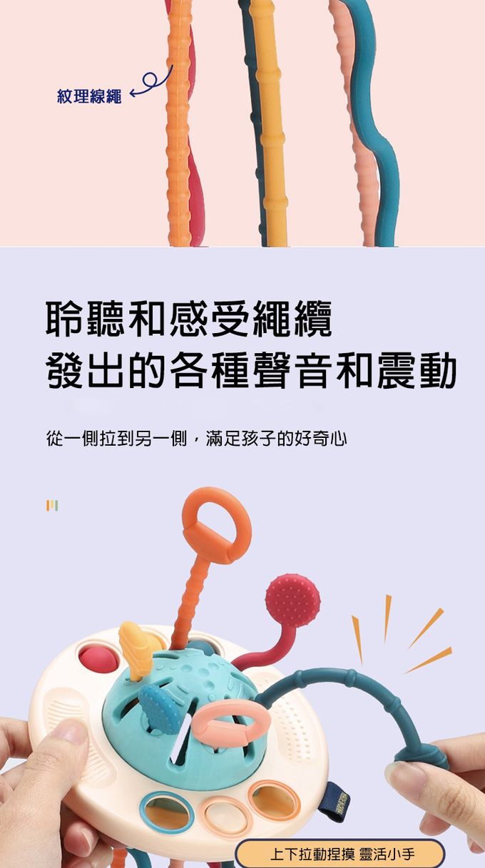 3.帶紋理的繩索寶寶更容易抓握拉動,可促進寶寶觸覺反應