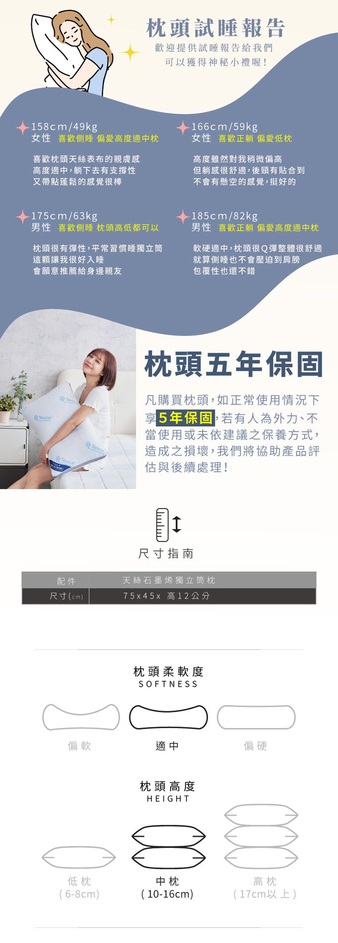 品名:天絲石墨烯獨立筒枕