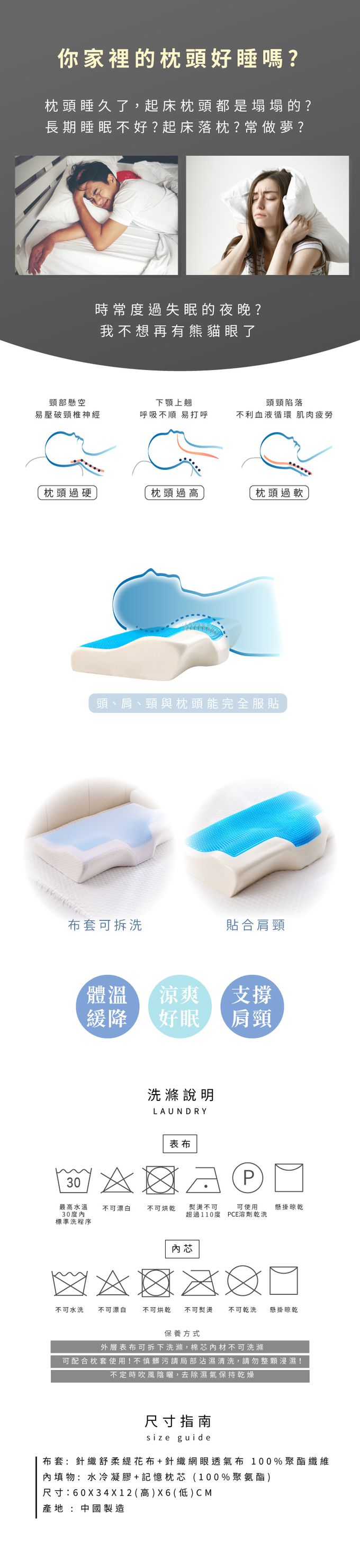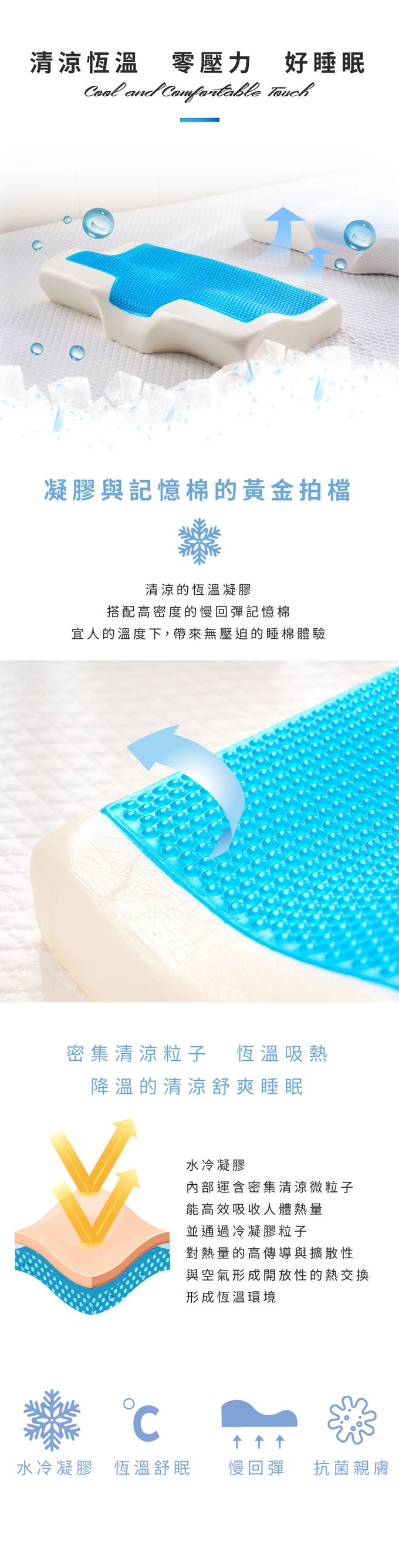 材質:水冷凝膠+記憶棉(100%聚氨酯)
