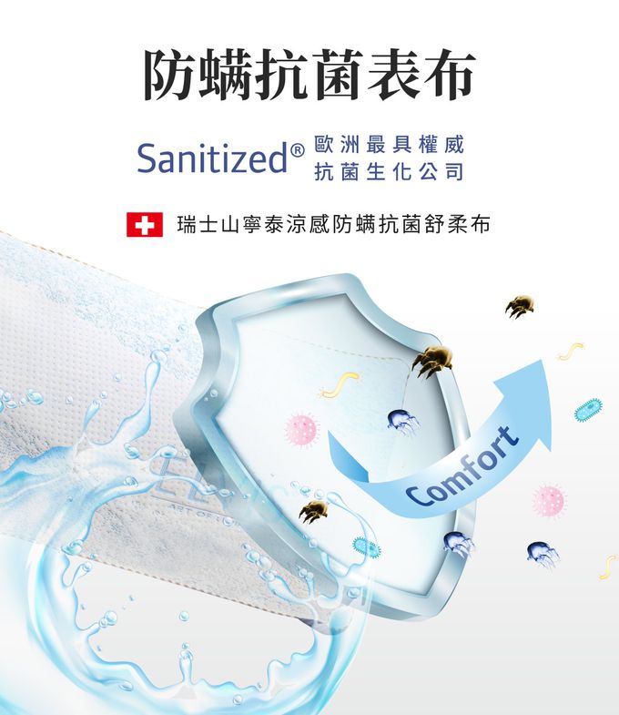 詳細尺寸:瑞士山寧泰涼感防螨抗菌舒柔布