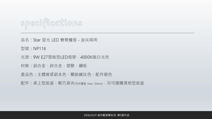 台灣製Star 星光LED雙臂檯燈-座夾兩用-NP1116