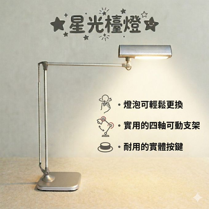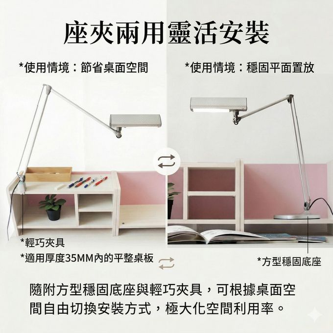 品名:台灣製Star 星光LED雙臂檯燈-座夾兩用