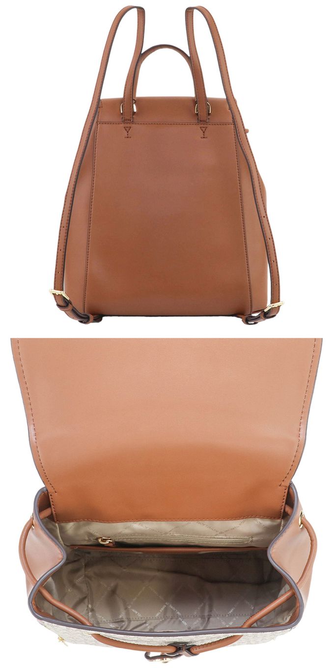 滿版LOGO拼接皮革後背包 (香草白駝)