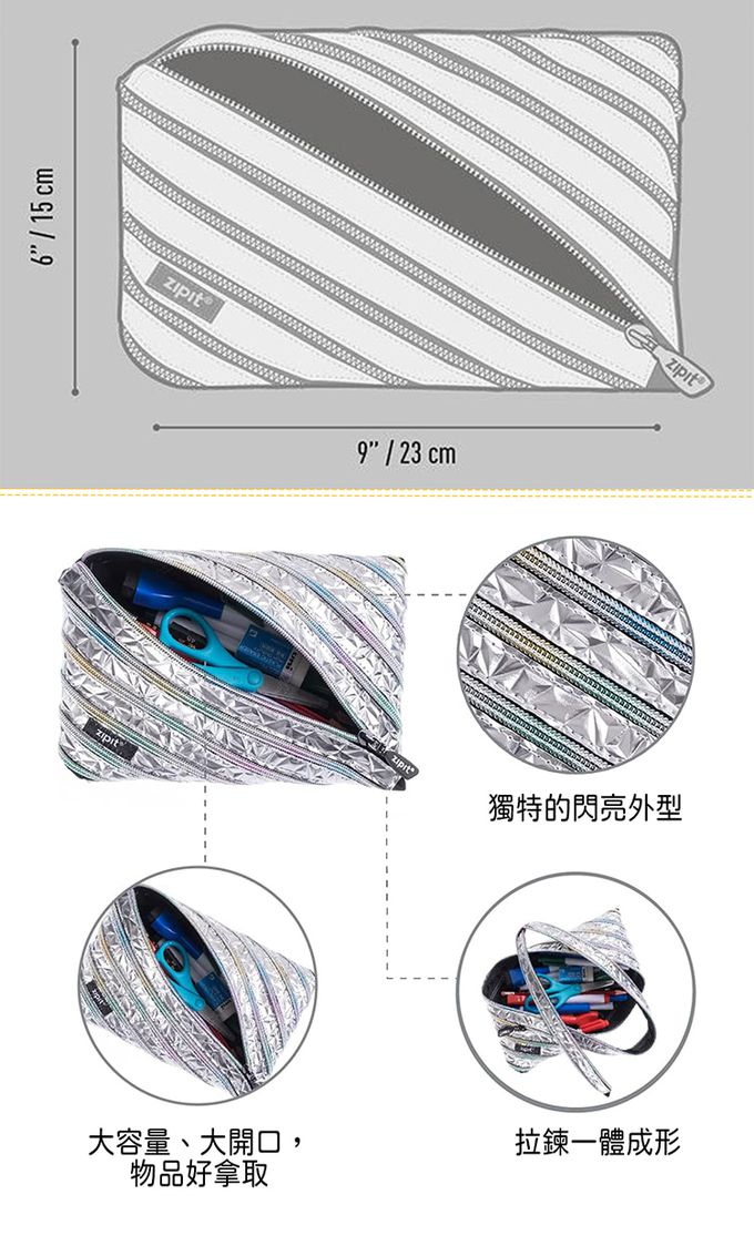 ZIPIT金屬萬用袋-銀色 (23 x 15 x 2 cm)