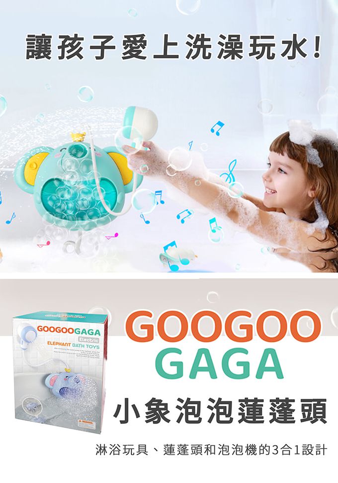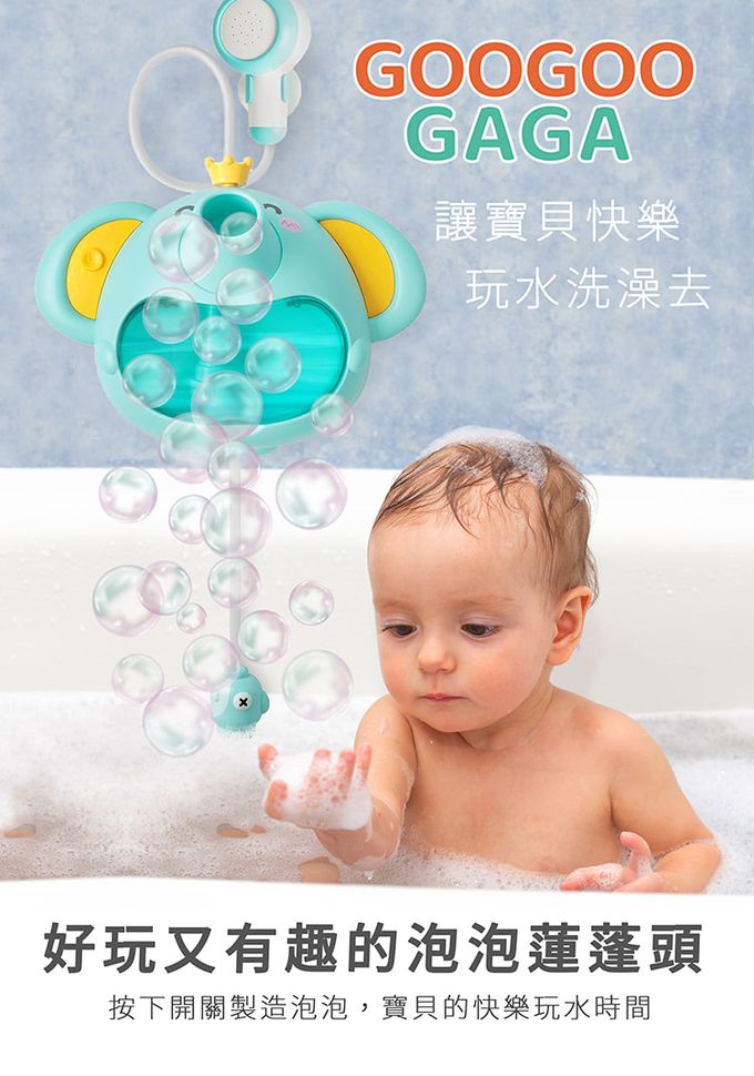 淋浴玩具、蓮蓬頭和泡泡機的3合1設計!按下開關製造泡泡,寶貝的快樂玩水時間。讓孩子快樂洗澡玩水~