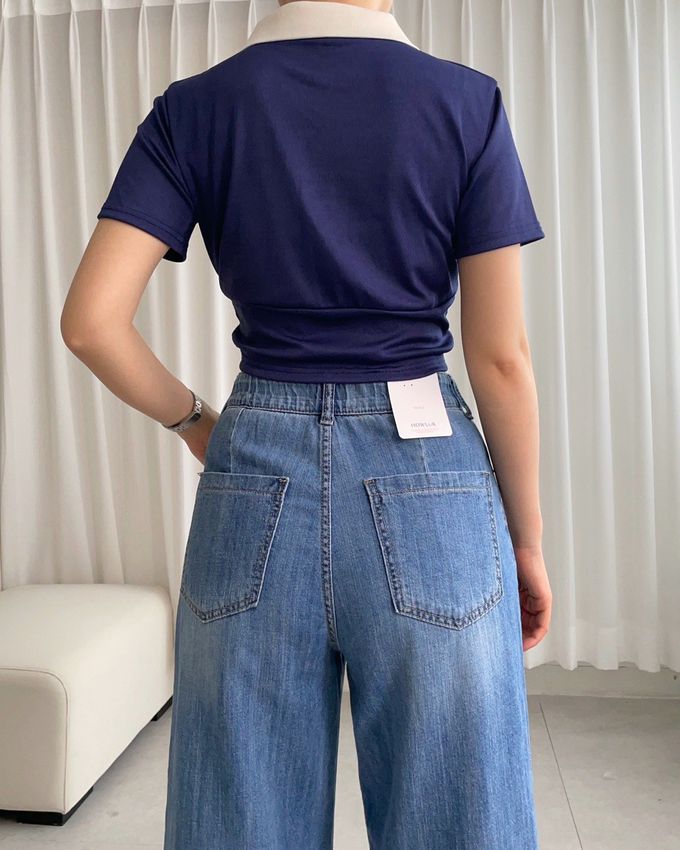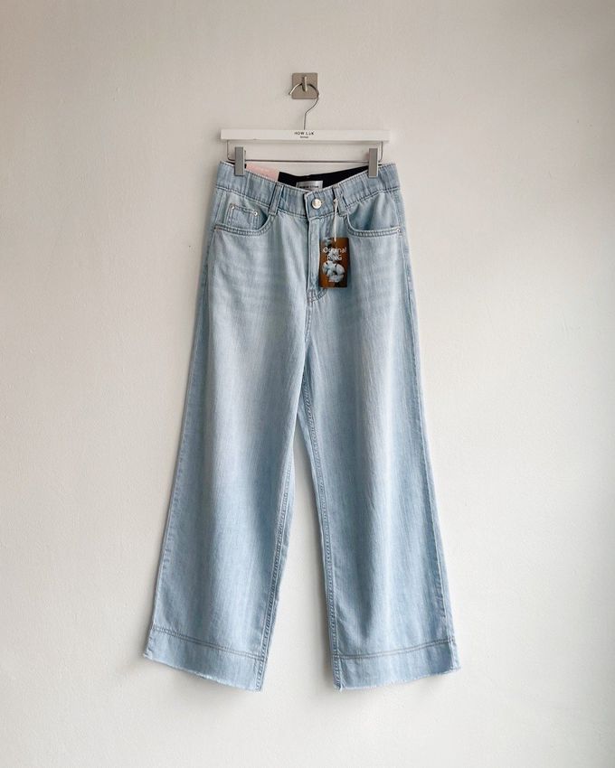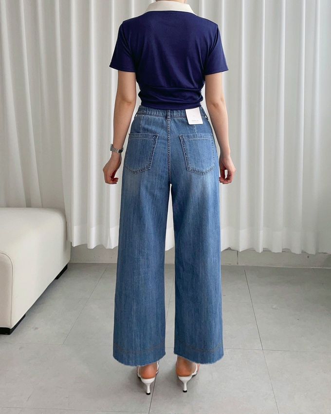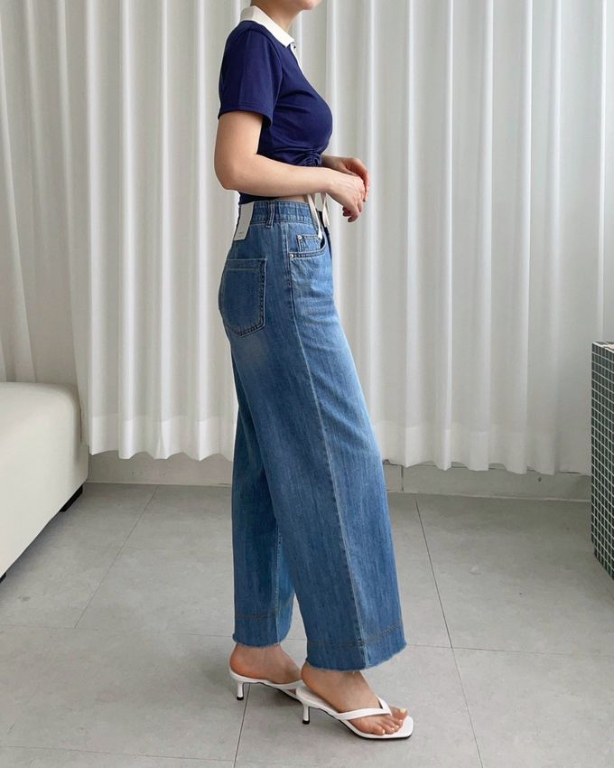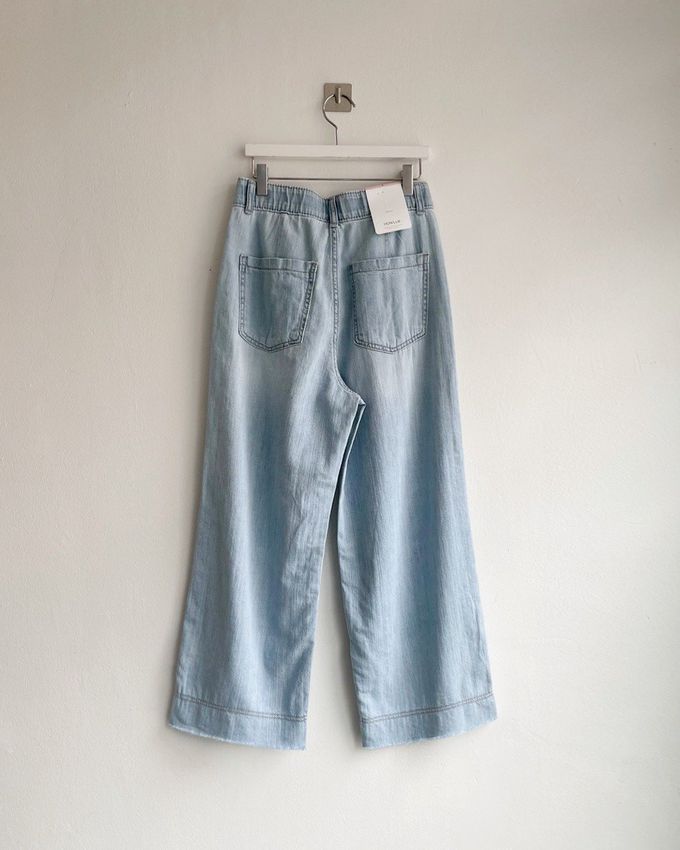 • 品名:彈性腰夏日薄丹寧直筒寬褲
