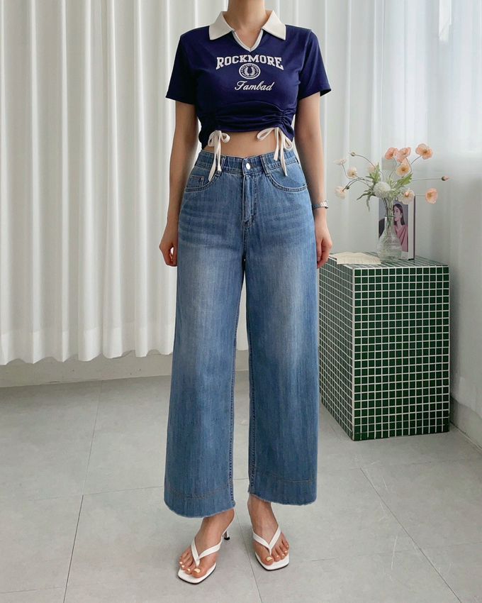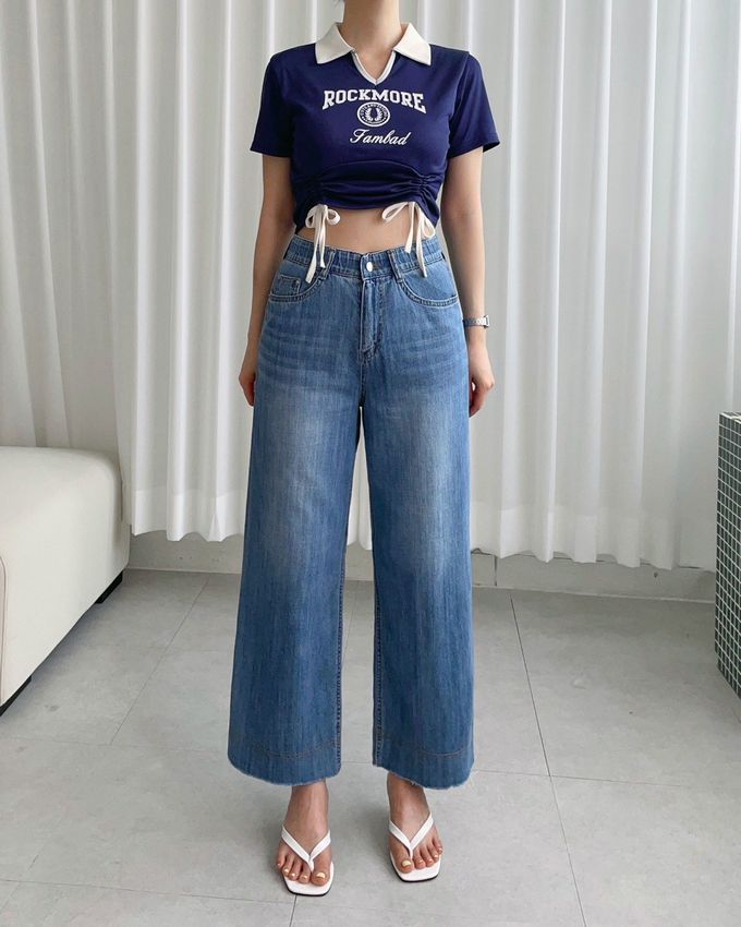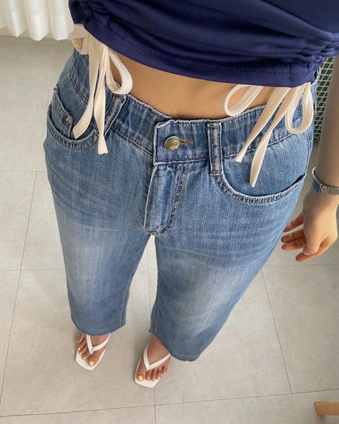 ✧ 彈性腰夏日薄丹寧直筒寬褲
