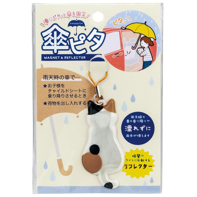 將內有磁鐵的吊飾安裝到雨傘後,將吊飾放到車頂上即可輕輕鬆鬆地將雨傘固定住,解放雙手。